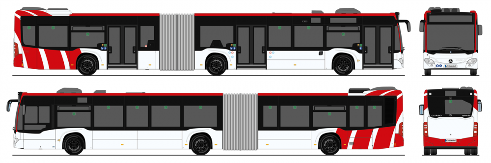 Körüklü ve sola otobüsler için farklı tasarımlar bulunuyor