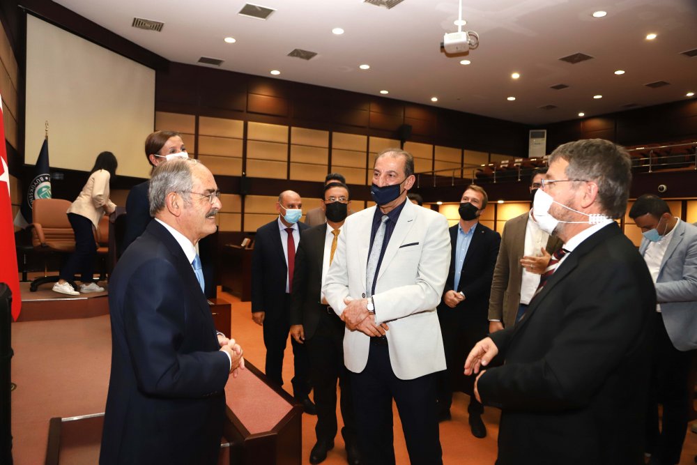 Eskişehir’de hafif raylı sitemlerin uygulanışını görmek için ESTRAM ekibi ile teknik gezi için bir araya gelen Irak Ulaştırma Bakan Yardımcısı Talip Al Saed ve beraberindeki heyet, Eskişehir Büyükşehir Belediye Başkanı Prof. Dr. Yılmaz Büyükerşen’e nezaket ziyaretinde bulundu. Ziyaretçilerini Büyükşehir Belediyesi Meclis Salonu’nda ağırlayan Yılmaz Büyükerşen, nazik ziyaretleri için Talip Al Saed’e ve heyetine teşekkür etti.