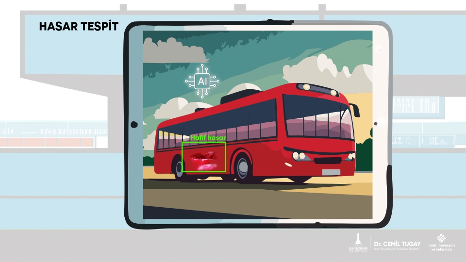 Projelendirilen Hasar Tespit çalışması ise şehir içi ulaşımda kullanılan otobüslerin adeta MR’ını çekecek. Bir otobüste mevcut olan fiziksel hasarlar, yapay zeka marifetiyle birkaç saniyede algılanacak. Buna göre yolcu otobüsü, sefere çıkmadan önce ya da seferden döndüğünde oluşturulan bir tünelden geçecek. Bu sırada plakası tanımlanan otobüsler, dört açıdan kameralarda görüntülenecek ve hasar kaynaklı fiziksel farklılıkları yapay zeka tarafından tespit edilecek. Bu sayede fiziksel hasarın iç donanıma zarar verip vermediği de incelenmiş olacak. Hasar aldığı belirlenen ve bir onarıma ihtiyaç duyan araçlar, bakım ve onarım birimlerine gönderilecek. Proje, güvenliği artırırken seferlerde kayıp ya da gecikmeyi de önlemiş olacak.