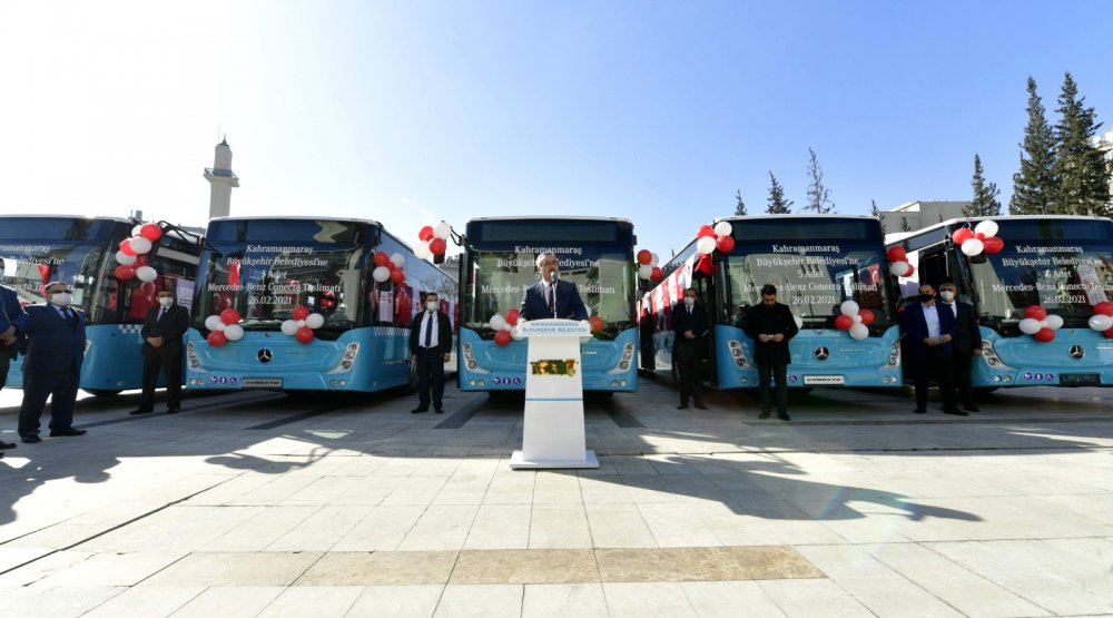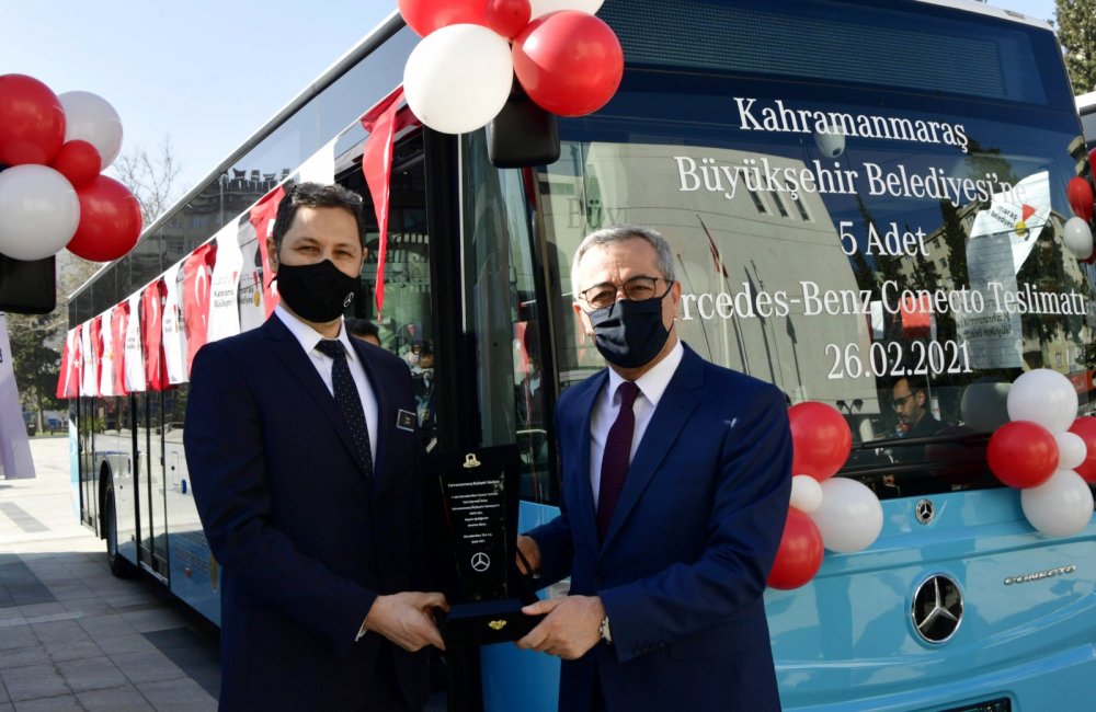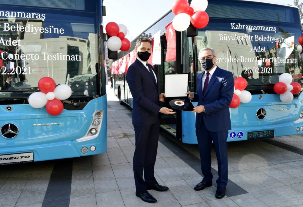 Kahramanmaraş Büyükşehir Belediyesi Başkanı Hayrettin Güngör; “Belediye olarak otobüs tercihimizde; dayanıklılığa, konfora, güvenliğe ve işletim maliyetlerine dikkat ediyoruz. Mercedes-Benz markası, Türkiye’de sadece Conecto araçlarda standart olarak sunduğu yeni güvenlik donanımlarıyla hem yolcuları hem de işletmecileri düşünüyor. Euro 6 motoruyla çevre dostu olması ve yakıt ekonomisi, Conecto’yu tercih etmemizde büyük rol oynadı.Toplu taşımadaki sorunları en aza indirmek ve yoğun hatlarda sefer sayılarını arttırmak adına araç filomuza 5 yeni otobüs katarak toplamda 70 otobüs ile halkımızın ulaşım ihtiyacını karşılayacağız. Bu teslimatın gerçekleşmesinde emeği geçen tüm Mercedes-Benz Türk yetkililerine teşekkürlerimi sunarken; yeni otobüslerimizin Kahramanmaraşlılara hayırlı olmasını, bu otobüslerle güzel ve sağlıklı günlerde seyahat etmelerini diliyorum.” dedi.