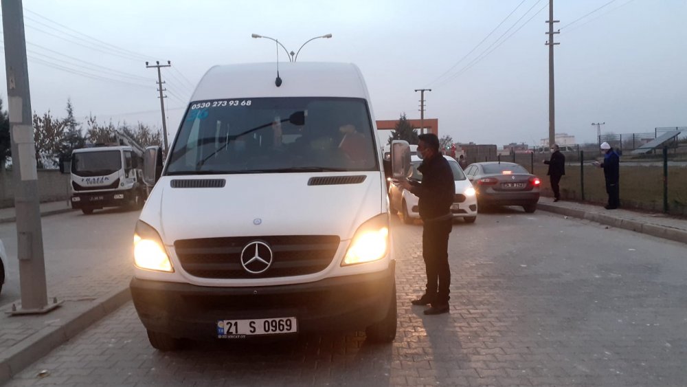 Diyarbakır Büyükşehir Belediyesi Zabıta Daire Başkanlığı, Elazığ yolu üzerinde yer alan Organize Sanayi Bölgesi’nde personel servis araçlarına yönelik çalışma ruhsatı, maske ve dezenfektan denetimleri yaptı.