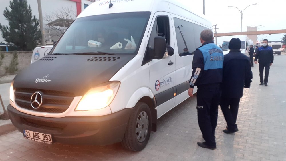 Zabıta ekipleri, durdurdukları personel servis araçlarının yolcu taşıma kapasitesini, araç içinde maske kullanılıp kulanılmadığını ve servis araçlarında el antiseptiğinin bulundurulup bulundurulmadığını kontrol etti.