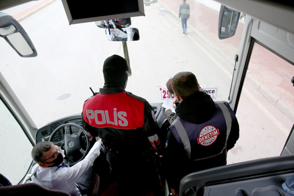 Kocaeli’de Covid-19 denetimleri için oluşturulan ekipler sabah saatlerinde şehiriçi ve şehirlerarası toplu ulaşım yapan araçlarda inceleme yaptı. Kocaeli Büyükşehir Belediyesi İzmit Şehirlerarası Otobüs Terminali başta olmak üzere çeşitli noktalarda denetimler yapan ekipler, şoförlerin Covid-19 tedbirlerine uyup uymadıklarını denetledi.