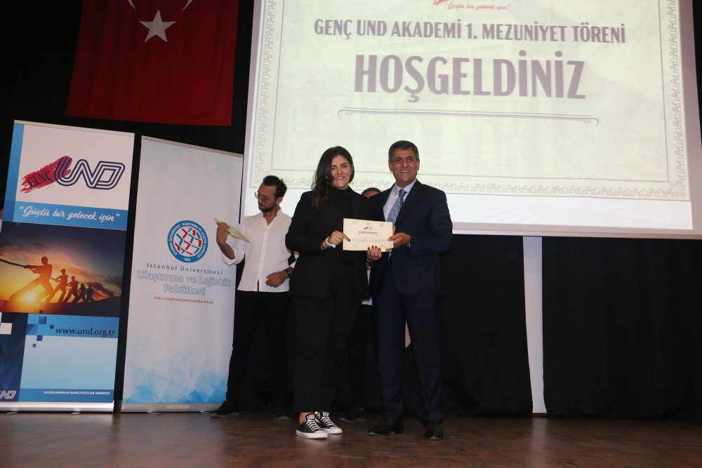 UND, sektöre genç lojistik profesyoneller kazandırmak için 30 Ocak 2021’de başlattığı Genç UND Akademi ilk eğitim dönemini tamamladı. İstanbul Üniversitesi Ulaştırma ve Lojistik Fakültesi ve Sürekli Eğitim Uygulama ve Araştırma Merkezi iş birliğiyle başlatılan program 6 aylık eğitimin sonunda Haziran ayında tamamlandı. Sertifika almaya hak kazanan ilk mezunlara UND Yönetim Kurulu Başkanı Çetin Nuhoğlu, İstanbul Üniversitesi Ulaştırma ve Lojistik Fakültesi Dekanı Prof. Dr. Abdullah Okumuş ve UND Yönetim Kurulu Üyeleri tarafından başarı sertifikaları takdim edildi.