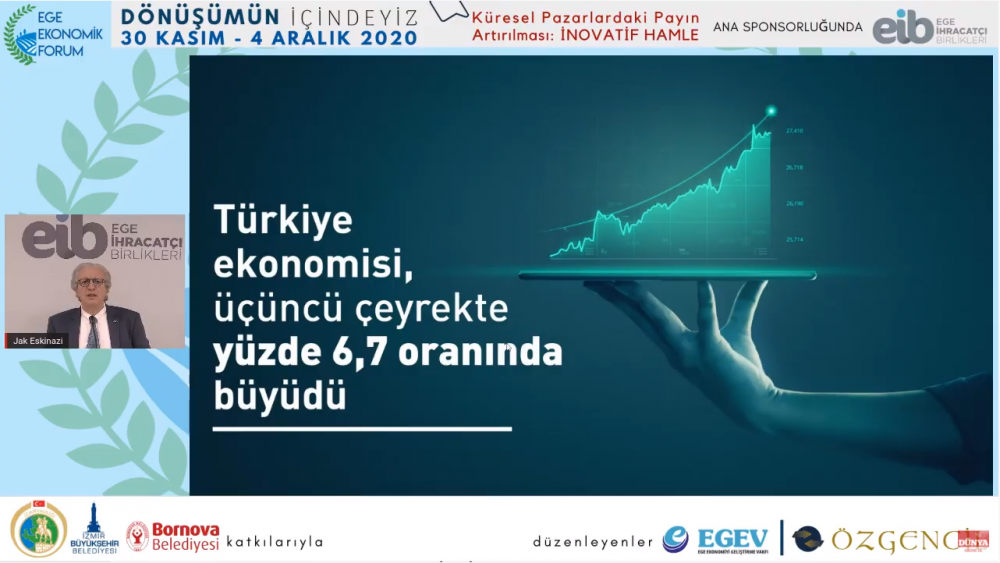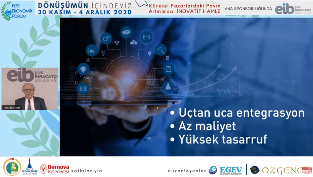 Ege Ekonomik Forumu’nun ikinci gününde Ege İhracatçı Birlikleri ana sponsorluğunda gerçekleşen ‘Küresel Pazarlardaki Payın Artırılması: İnovatif Hamle’ oturumunun açılış konuşmasını Ege İhracatçı Birlikleri Koordinatör Başkanı Jak Eskinazi gerçekleştirdi.