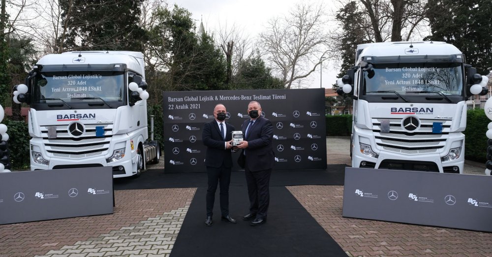 Mercedes-Benz Türk, 2010 yılından bu yana iş ortaklığı yaptığı Barsan Global Lojistik firmasına gerçekleştirdiği filo teslimatlarına 2021 yılında bir yenisini daha ekledi. Aksaray Kamyon Fabrikası’nda üretilen 320 adet Actros 1848 LSnrL aracının tamamını “tam paket servis sözleşmeli” olarak satın alan Barsan Global Lojistik, yeni araçlarını uluslararası nakliye alanında kullanacak.