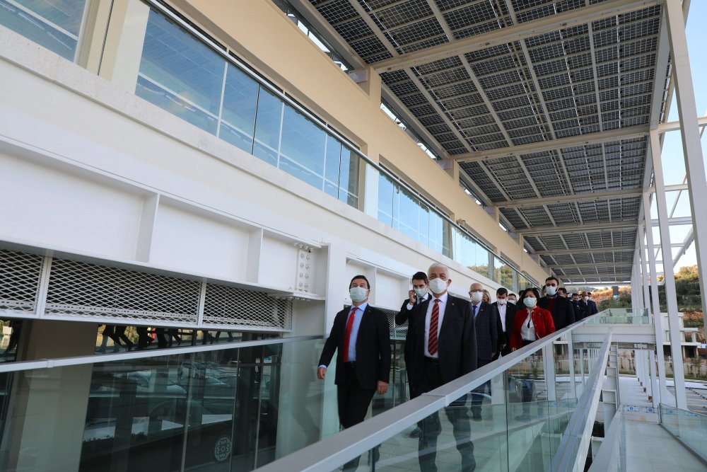 Bodrum’da yapımı tamamlanan otogarın faaliyete girmesi nedeniyle İlçenin önemli bir eksiğinin ortadan kalktığını vurgulayan Muğla Büyükşehir Belediye Başkanı Osman Gürün, Muğla’nın dünyaya açılan kapısı olan Bodrum’a yakışan bir otogar olduğunu belirtti. Başkan Gürün,“ Bodrum sadece Türkiye’nin değil dünyanın sayılı turizm merkezlerinin başında geliyor. Muğla güneşlenme süresi bakımından Türkiye ortalamasının üzerinde bir şehir. Bodrum Otogarı çatısındaki güneş panelleri sayesinde kendi enerjisini üretiyor. Büyükşehir Belediye’mizin Muğla genelinde kurduğu güneş panellerinin en büyüğü Bodrum Otogarı çatısındaki güneş panelleridir. 640 kwh gücündeki panellerle tükettiği enerjiyi ve fazlasını çatısında üretecek. Geleceğin teknolojisi olacak elektrikli araçlar için de Türkiye’de ilk kez bir otogarda elektrikli araçların şarj edilebileceği 6 ayrı istasyonumuz Bodrum otogarımızda var. Eski otogarın Bodrum ilçemizin en işlek yerinde olması nedeniyle yaşanan trafik sıkışıklığı da yeni otogarımızın faaliyete girmesiyle bir nebze olsun rahatlayacak. Bodrum ilçemizde başlattığımız alt yapı, liman, yaşam merkezi, otogar gibi dev yatırımları tek tek hayata geçirmenin mutluluğunu, bu güzel şehre hizmet etmenin gururunu yaşıyoruz” diye konuştu.