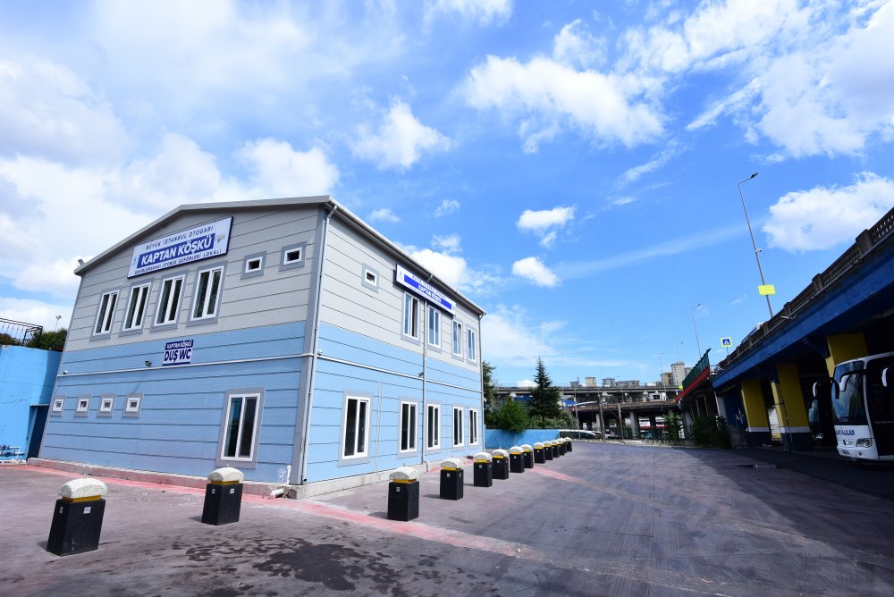 Hizmete açılan “Kaptan Köşkü’nde, uzun yol yapan otobüs şoförleri ve muavinlerine dinlenme, banyo, üniforma yıkama, yeme içme ve sosyalleşme imkanı sunuluyor.