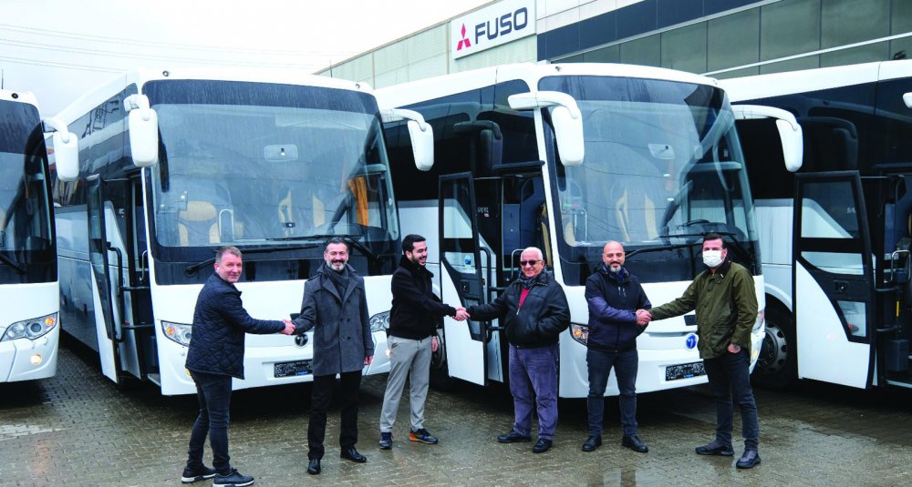MAPAR Otomotiv, 2021 yılının ilk iki ayında teslimat rüzgarı estiriyor. Mersin Vif Turizm’e Ocak ayında yapılan 10 adetlik araç teslimatının ardından bu sefer İstanbul ve Bodrum merkezli DAE Turizm’e 20 adetlik ikinci el otobüs satışı gerçekleştirildi. Otobüsler 12 Şubat Cuma günü MAPAR Otomotiv Yönetim Kurulu Üyesi Hıdır Erdi Şahin tarafından DAE Turizm Yönetim Kurulu Başkanı Turgut Coşkun, Yönetim Kurulu Üyeleri Barış Coşkun ve Soner Coşkun’a teslim edildi.