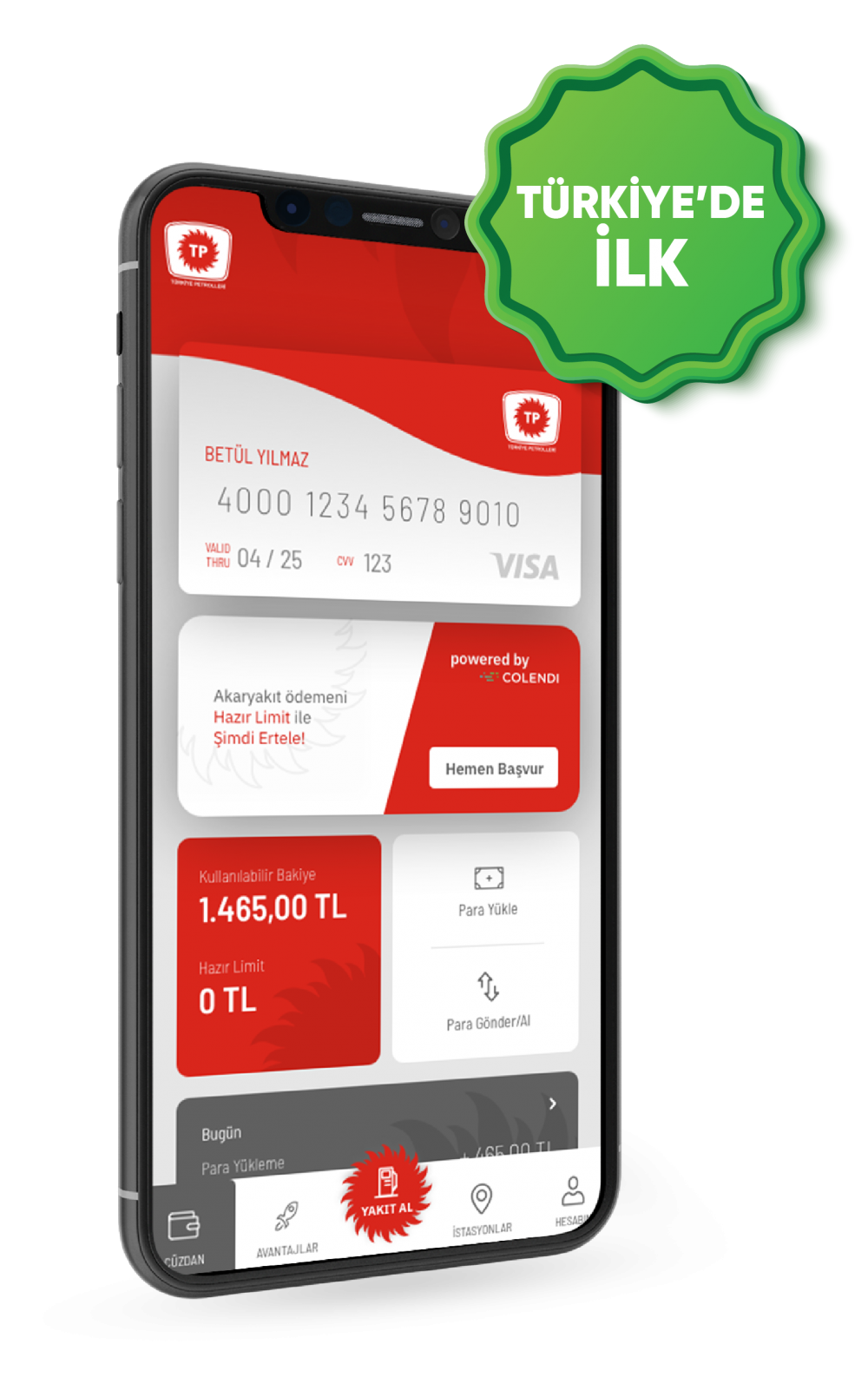 TP Mobil uygulamasını indiren tüketiciler bir banka hesabına, kredi kartına ya da kefile gerek kalmadan, anında tanımlanan hazır limitleri ile akaryakıtlarını şimdi alıyor, ödemesini ise erteliyor. TP Mobil, akaryakıt alımının yanı sıra, tüketicilere özel oluşturulan TP Cüzdan ile IBAN numarasına gerek duymadan, telefon numarası veya QR kodla 7/24 ücretsiz para transferine de olanak sunuyor. Ayrıca TP Mobil Kart ile kullanıcılar marketten kozmetiğe, mobilyadan giyime tüm online alışverişlerini diledikleri gibi yaparken, aynı zamanda üye işyerlerinden yaptıkları alışverişlerden de anında indirim kazanıyor.