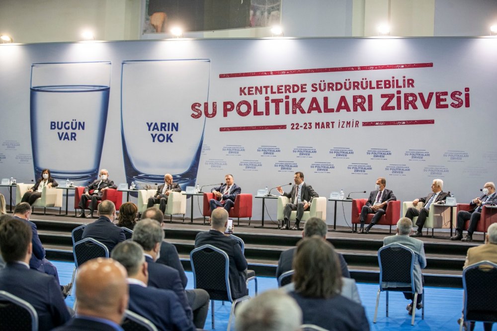 Bizler Türkiye’nin 11 büyükşehir belediyesinin ve 11 il belediyesinin başkanları, bu vicdani ve bilimsel sorumluluktan hareketle bugün, 22 Mart 2021’de, Dünya Su Günü’nde İzmir’de buluştuk. Amacımız, iklim krizinin ağırlaşan sonuçlarını da dikkate alarak Türkiye için başka bir su politikası önermek ve bu topraklarda geleceğimizi, çocuklarımız ve doğamız için güvence altına almaktır.