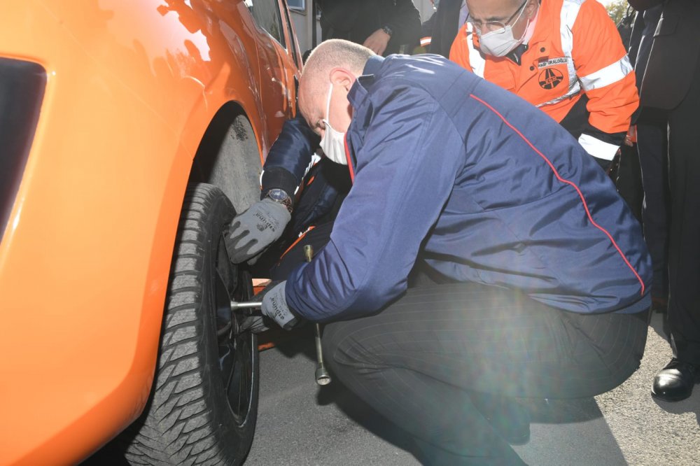 Bakan Karaismailoğlu, kurdele kesim töreninin ardından Karayolları Genel Müdürü Abdulkadir Uraloğlu ile birlikte araç parkurunda incelemelerde bulundu. Daha sonra kar küreme aracını kullanan Karaismailoğlu, araç lastiği değiştirdi.