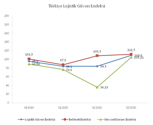 KPMG Türkiye ve İstanbul Üniversitesi Ulaştırma ve Lojistik Fakültesi iş birliğiyle hesaplanan Lojistik Güven Endeksi yılın üçüncü çeyreğinde pozitife döndü. İkinci çeyrekte negatif görünümde olan endeks, Temmuz-Eylül arasında bir önceki üç aylık döneme göre yüzde 25’lik artışla 109,55 puana yükseldi.