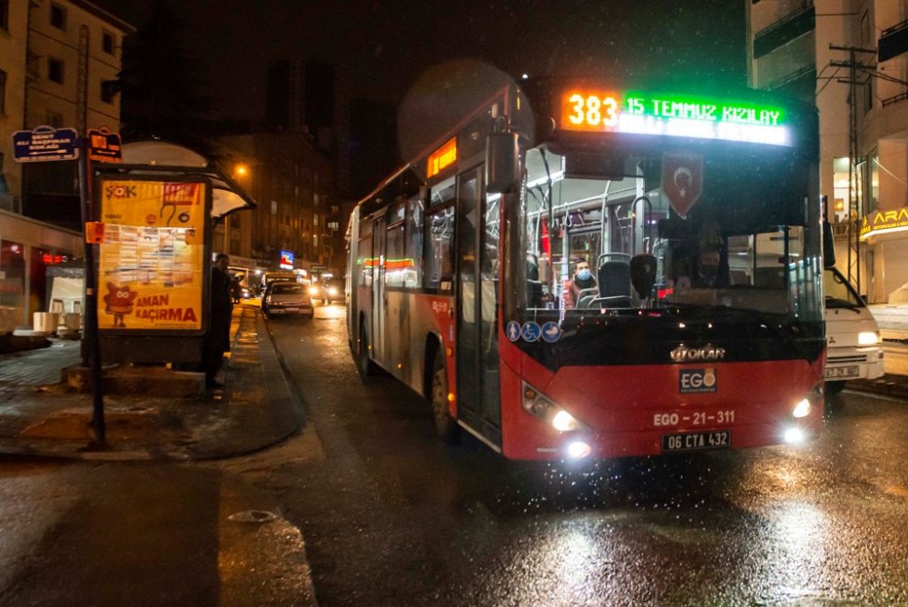 Pandemi sürecinde toplu ulaşım hizmetlerini aksatmadan sürdüren Ankara Büyükşehir Belediyesi normalleşme sürecine geçilmesi ve sürecin olumsuz etkilerinin azalması üzerine gece ulaşımında yeni düzenleme yaptı.Pandemi döneminde (9-30 Mart 2020 tarihleri arasında) yolcu sayısının yüzde 84 azalması nedeniyle gece seferlerini 1 Nisan 2020 tarihi itibarıyla durduran ve kontrollü normalleşmeye geçilmesiyle de 27 Eylül 2021 tarihinden itibaren en son saat 01.30’da hareket eden EGO Genel Müdürlüğü’ne bağlı otobüsler 26 Mart 2022 Cumartesi günü 00.00 itibarıyla saat 01.30, 03.30 ve 05.30 aralıklarında belirlenen semtlerden ve Ulus-Kızılay duraklarından karşılıklı olarak hareket edecek. “ego.gov.tr” adresi üzerinden de ayrıntılı bilgiye ulaşılabilecek olan gece seferlerinin gerçekleştirileceği semt, güzergah ve sefer saatleri ise şöyle: