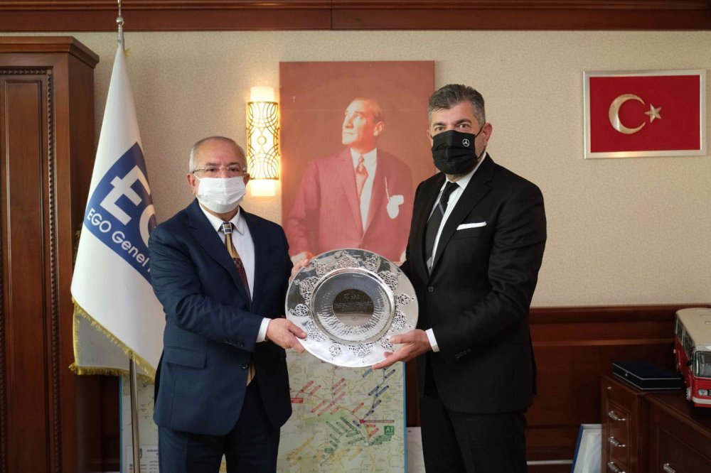 EGO Genel Müdürü Nihat Alkaş, Mercedes-Benz Türk Otobüs Pazarlama ve Satış Direktörü Osman Nuri Aksoy günün anısına bir hediye sundu.