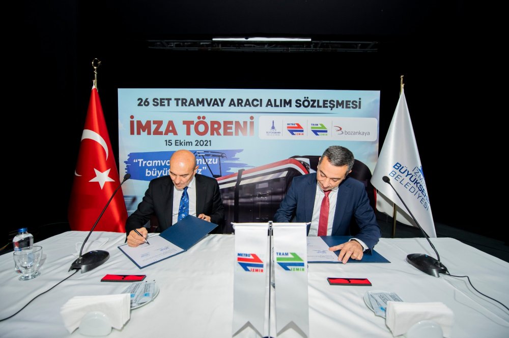 Kent içi ulaşımda raylı sistem ağını güçlendirmek için 414 milyon liralık yatırımla Çiğli Tramvayı’nın inşaatına başlayan İzmir Büyükşehir Belediyesi, sürdürülebilir ulaşım yolunda dev bir adım daha attı. Büyükşehir Belediyesi, Bozankaya A.Ş. ile Çiğli, Konak ve Karşıyaka hatlarında çalışacak 26 elektrikli tramvay aracının alım sözleşmesi için karşılıklı imza attı. Üretilecek araçlarda yüzde 51 oranında yerlilik şartının arandığı ihalenin kazananı 749 milyon 750 bin TL’lik teklifle Bozankaya A.Ş. firması olmuştu.