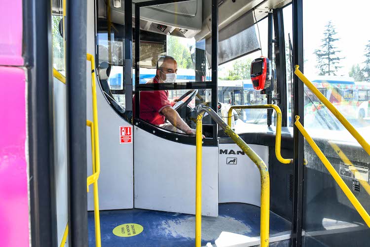 Büyükşehir Belediyesi toplu taşıma araçlarında hijyen ve sosyal mesafe kurallarına yönelik önlemleri daha da artırırken, EGO’ya ait toplam bin 450 otobüste sürücü bölümüne yerleştirilen şeffaf panel sayesinde de yolcu ve şoför arasındaki temasın mümkün olabildiğince en aza indirilmesi hedefleniyor. Montaj işlemi tamamlanana kadar günde 50 otobüse uygulanacak olan şeffaf kabin uygulaması ile hem vatandaşların hem de sürücülerin sağlığını korumayı amaçladıklarını ifade eden EGO Genel Müdür Yardımcısı Zafer Tekbudak, şu bilgileri verdi: “EGO Genel Müdürlüğü olarak bugüne kadar birçok uygulamamız oldu. İlk önce dezenfektan ve maske dağıtımı ile başladık. Ankara İl Umumi Hıfzıssıhha Kurulu’nun almış olduğu kararla sosyal mesafeyi anlatan çıkartmaları (sticker) otobüslere yapıştırdık. Son olarak da şeffaf kabin yapımına başlandı. Bin 450 aracımıza şeffaf kabin uygulamasını yapmayı planlıyoruz. Hızlı bir sürede bu süreci tamamlayacağız.”