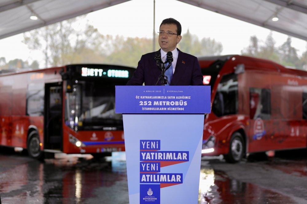 “Bu bir ülkenin, bir milletin iyi anlaması gereken bir durumdur” diyen İmamoğlu, “Bir hizmet… Allah aşkına, bir tane açıklama yapılmadı buna. Yani bu niçin engellenir? Bu niçin imzalanmaz? Tek bir açıklama yapılmadı. Ne diyelim buna? Bu ihtiras nedir? Bu kıskançlık nedir? Sanki 2019’da İstanbul Büyükşehir Belediyesi seçimini kazandığımız o seçimde, birisinin tapulu malını elinden aldık. Yok; bu senin vallahi tapulu malın değil. Bu milimetrekaresine kadar, 16 milyon insanına, 86 milyon memleketin insanının ortak olduğu bir maldır, bir vatan parçasıdır. Onun için; vallahi senin malın değil. Böyle davranamazsınız. Bunu yaptılar. Birçok olayda yaptılar. Ama yılmadık, yolumuza devam ettik ve bugün yerli firmaların da bu işe ilgi göstermesiyle, karşılıklı yaptığımız açık ihale süreciyle, verilen en uygun koşullarda fiyatlarla, İstanbul'umuza 132’si 280 yolcu kapasiteli, 120’si de 200 yolcu kapasiteli, Akia ve Otokar marka 252 aracımızı İstanbul'a kazandırdık ve milletimize metrobüs hattında, pırıl pırıl yepyeni otobüslerle yolculuk ve seyahat etme imkanı sağladık. Bu, milletimizin bütçesinin başarısıdır” şeklinde konuştu.