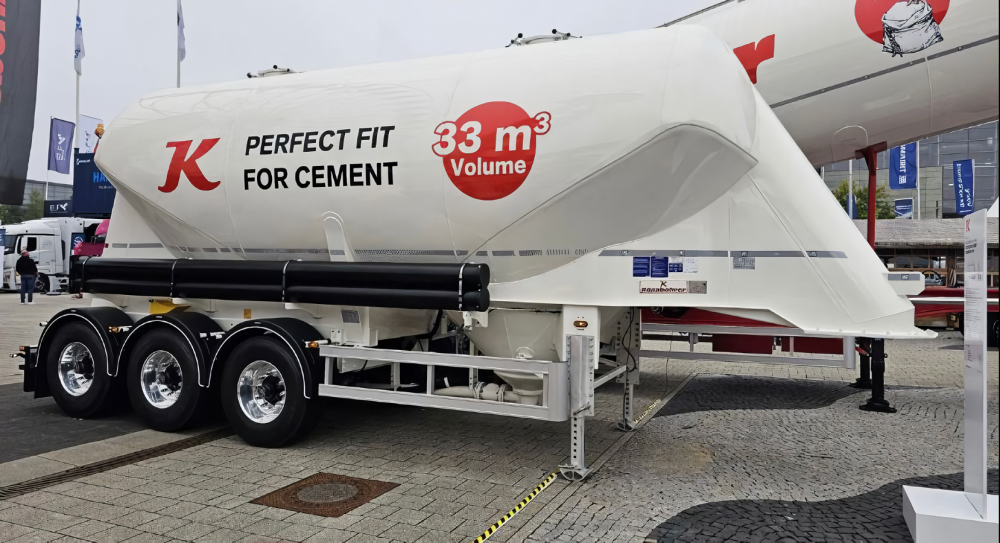Tırsan, Avrupa’nın en hafif silobas ailesinden 33 m3 yatay çimento silosunu IAA’da müşterileri ile buluşturdu. Yüksek mukavemetli özel alaşım alüminyum malzemeden üretilen 33 m3 çimento silosu, yarım şasisi ve düşük boş ağırlığı sayesinde sunuduğu verimlilikle daha fazla yük taşıma imkanı sağlar ve operasyonel maliyetleri minumuma indiriyor. Özel boşaltım koni dizaynı ve boşaltım akışkanlaştırıcı sistemi ile tank içerisinde malzeme bırakmadan en hızlı ve tam boşaltım yaparak zamandan da kazandırır. Özel tasarımı ile yüksek manevra kabiliyeti ile konforlu sürüş imkanı sunan çimento silosu, müşterilerden büyük ilgi gördü.