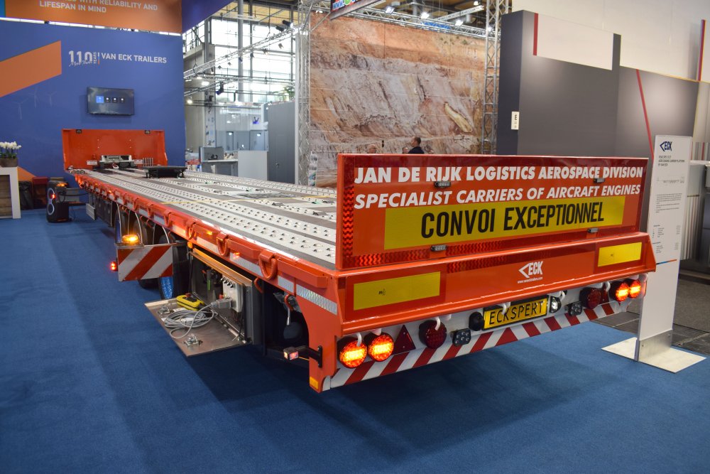 Uçak motoru taşımacılığı için özelleştirilmiş platform aracı da Tırsan’ın özel taşımacılıktaki gücünü gösterdi. 18 tonluk uçak motorlarını taşımak üzere tasarlanan platform aracı, tabanına yerleştirilen ve kablosuz kumandalar ile yönlendirilen kayar taban sistemi rollerbede sahip. Tırsan mühendisliği ile geliştirilen bu özel taban uçak motorlarının yükleme ve indirme operasyonlarında kullanılıyor.