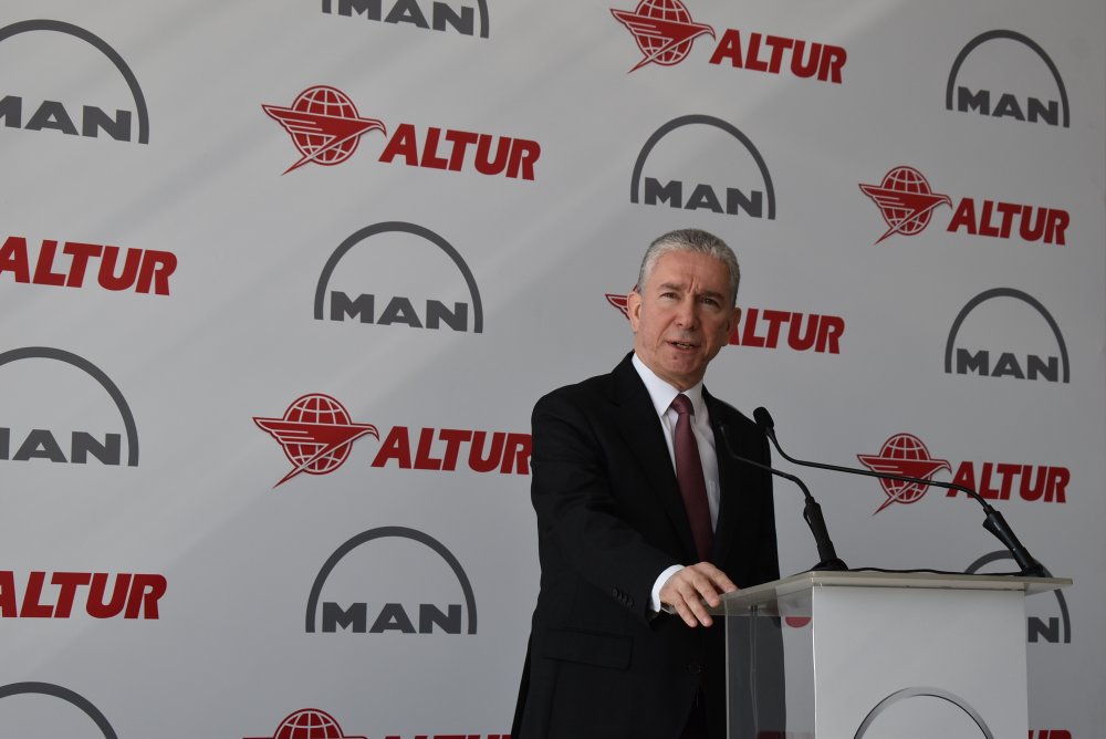 Can Cansu’nun ardından MAN Kamyon ve Otobüs Ticaret A.Ş Genel Müdürü Tuncay Bekiroğlu konuştu. ‘Bu işbirliğinden çok mutluyum, çok gururluyum’ diyerek sözlerine başlayan Tuncay Bekiroğlu şunları söyledi: Bugün Türkiye’nin en güzide kurumlarından olan ve kendi alanında en önde gelen firmalar arasında yer alan Altur’un bize olan teveccühünü hep birlikte kutluyoruz. Bu işbirliği artarak devam edecek. Tören öncesinde yaptığımız görüşmede Sayın Abdurrahim Albayrak müjdeyi verdi. 2025 yılında yine yeni yatırımlar olacak. Volkswagen grubu olarak dünyanın en büyük otomotiv üreticilerinden birisiyiz. Onun bünyesinde de MAN grubu olarak dünyanın en büyük ticari araç üreticilerinden bir tanesiyiz. Teknolojik olarak da ilk dizel motorun icadından bu yana bu alanın öncüsü olduk. Bundan sonra da bu şekilde devam edecek. Ama asıl gücümüz; geçmişimiz, teknoloji bilgi birikimi değil. Bize bu teveccühü gösteren dostlarımız, yaşam boyu iş ortaklarımız. Yeni yatırım hayırlı, uğurlu olsun. Bol kazançlar sağlasın.”