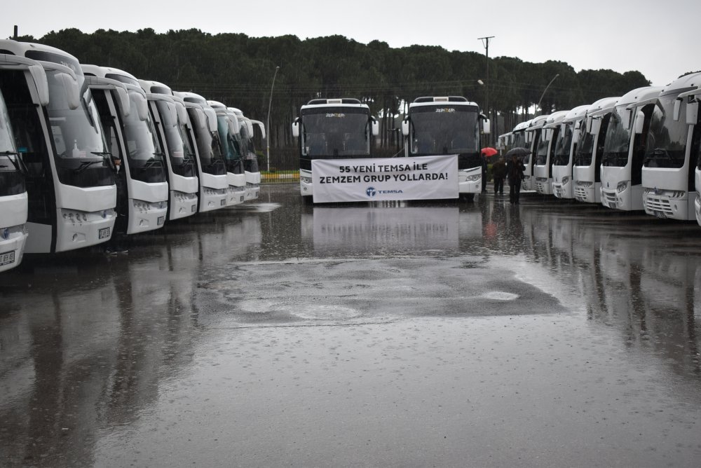 TEMSA’dan toplam 55 araç teslim alan Zemzem Turizm Yönetim Kurulu Başkanı Ayhan Yıldırım, 20 yıldır taşımacılık faaliyeti gösterdiklerini, TEMSA ile 13 yıldır ticaret yaptıklarını belirterek, “Neredeyse 10 yıldır filomuzda TEMSA markası dışında araç bulunmuyor. TEMSA ile ilk temasımız 2008 yılında oldu ve o gün bugündür TEMSA’nın bayrağını taşıyoruz. TEMSA ürünlerini tercihimizi düşük yakıt tüketimi ve satış sonrasında yüksek hizmet kalitesine sahip olması belirliyor. Satış sonrasında hizmetten de çok memnunuz. Yedek parça ve bakım noktasında, beklediğimiz destekleri alıyoruz. TEMSA Maraton’da bölgede iyi bir ivme yakalattık, bu ivmeyi devam ettirmek istiyoruz. Şu an filomuzda 1200 özmal içerisinde 400 adet TEMSA markalı araç var. Yaklaşık 2000 araç çalıştırıyoruz. Her ay TEMSA araç alıyoruz.Bugün filomuza 10 Maraton, 10 Safir, 35 adet de Prestij daha ekledik” dedi.