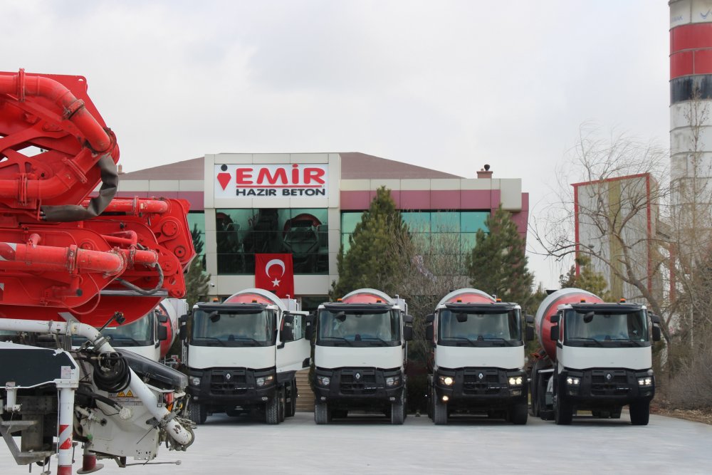 Konya’daki hazır beton sektöründe birçok ilke öncülük eden Emir Hazır Beton, Hatay ve Malatya’daki tesisleriyle birlikte yılda yaklaşık 1 milyon m3 hazır beton üretimi yapıyor. Filosunda 55 adet beton mikseri ve 11 adet beton pompası bulunuyor. Araçlar ortalama 40-45 km olan bir güzergahta günde 9 sefer yapıyor. Teslimat töreninde yeni Renault Trucks K 440 araçlarını değerlendiren Emir Hazır Beton Yönetim Kurulu Üyesi Emir İncer, açıklamasında; “Her ayrı iş kolu gibi hazır beton sektörü de üretimden nakliyeye kendine özgü zorlu dinamiklerine sahip. Ürünlerimizin nakliyesi kısmında en önemli faktörler, dayanıklılık, yüksek performans ve tabi ki maliyet yönetimi. Uzun araştırmalarımız sonucunda Renault Trucks K 440 kamyonların, bu üç konuda da beklentilerimize cevap verdiğini gördük. Buyruk Grup’un yakın ilgisi ve desteği de alım kararımızı kolaylaştırdı” şeklinde belirtti.