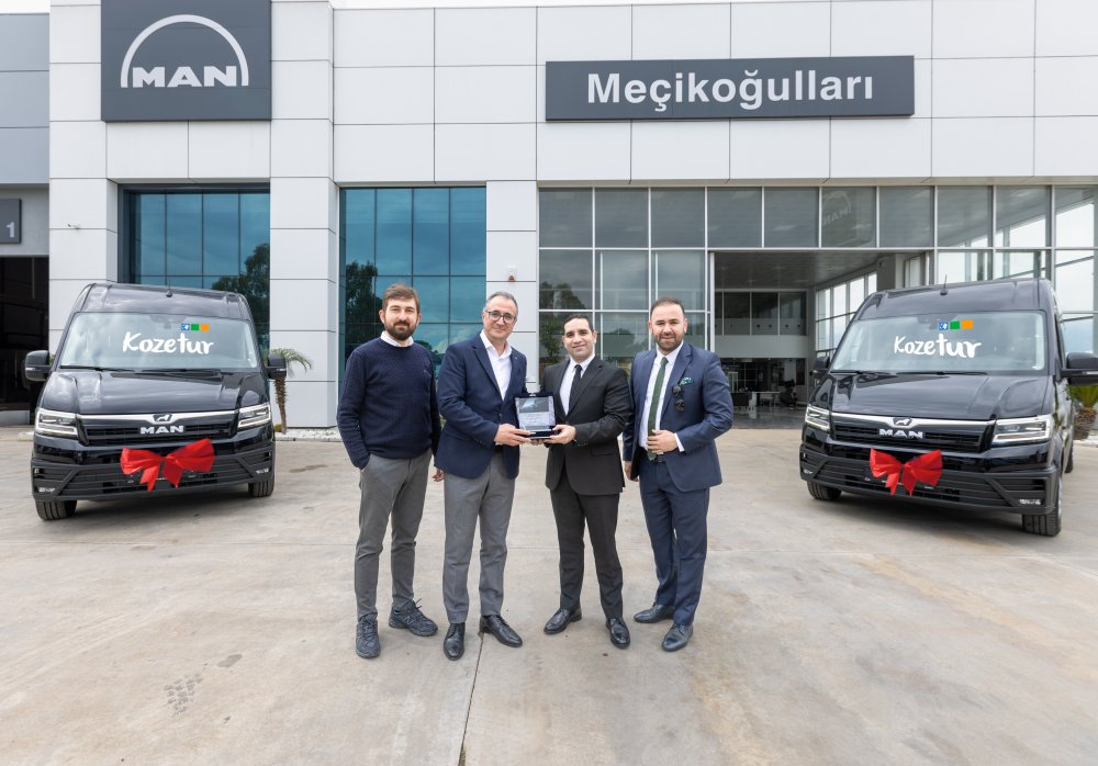 MAN Kamyon ve Otobüs Ticaret A.Ş’de yeni yılla birlikte TGE teslimatları da hız kesmeden devam ediyor. Turizm taşımacılık alanında çalışan firmaların yoğun ilgisi ile Akdeniz bölgesinde peş peşe teslimatlar gerçekleştiren MAN, son teslimatını ise bölgenin lider firmalarından Kozetur’a yaptı. 2011 yılından bu yana turizm alanında faaliyet gösteren Antalya merkezli Kozetur, yeni araç yatırımları kapsamında filosunu 10 adet MAN TGE ile güçlendirdi. Firma, satın aldığı araçların ilk kısmı olan 4 adet TGE’yi MAN’ın Antalya Meçikoğulları Bayii’nde gerçekleştirilen törenle teslim aldı. MAN Meçikoğulları Antalya Plaza’da gerçekleştirilen teslimat törenine Kozetur firmasının sahibi Onur Oktar Zengin ve MAN Kamyon ve Otobüs Ticaret A.Ş. Hafif Ticari Araç ve İkinci El Satış Direktörü Cumhur Kutlubay katıldı.