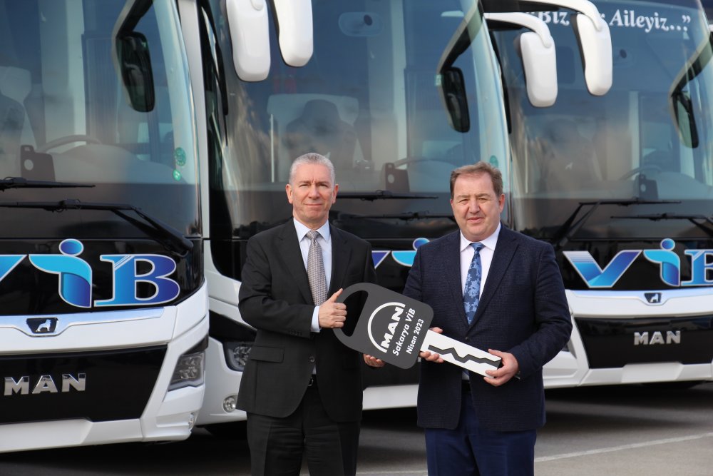 Sakarya VİB Kooperatifi altında 1997 yılında kurulan firma; müşteri ihtiyaçlarını hızlı, etkin, kaliteli çözümler sunma misyonu ile çıktığı yolda filosunu MAN otobüslerle güçlendirdi. Firma, yeni araç yatırımları kapsamında filosuna katmak için satın aldığı 30 adetlik MAN otobüsün ilk grubu olan 16 adet, 2+1 koltuklu Lion’s Coach’u törenle teslim aldı. Son alımlarla birlikte firmanın filosundaki 52 otobüsün 30 adedi MAN markası oldu.Ankara’daki MAN Costumer Center’da düzenlenen teslimat törenine MAN Kamyon ve Otobüs Ticaret A.Ş. Otobüs Satış Direktörü Can Cansu ve Otobüs Satış Bölge Koordinatörü Emrah Albustanoğlu ile Sakarya VİB Kooperatif Başkanı Suat Akın ve Yönetim Kurulu üyeleri katıldı. Törende Can Cansu, sembolik MAN anahtarını Suat Akın’a teslim etti.