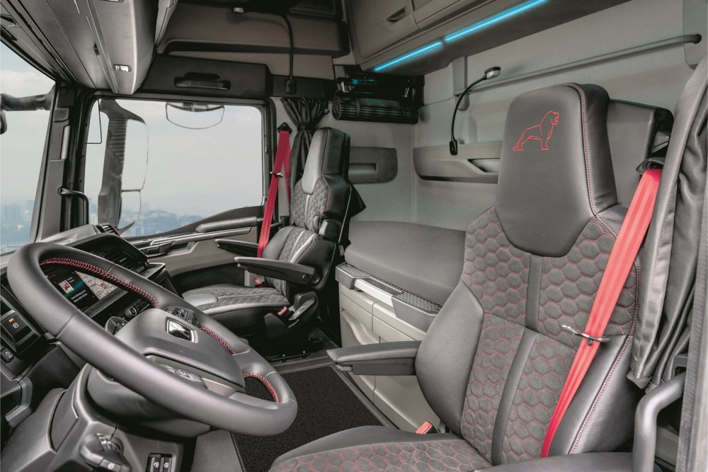 Kararında “Burada, geniş ve yüksek GX kabini ile MAN TGX Individual Lion S, yarışan araçlar arasında en ikna edici olanıydı” diyen Jüri, yeni MAN kamyon neslinin cazibesini övdü. Test modelinin en üst seviyedeki donanım özelliklerine dikkat çeken jüri, MAN için "Baştan sona bir göz ziyafeti" ifadesini kullandı. Diğer özelliklerin yanı sıra, araca kolayca girebilme özelliği ve çeşitli depolama alanları olan iç mekânın da vurgulandığı kararda, kabin orta alanı ve üzerindeki boşluğun çok ferah olduğu kaydedildi. MAN TGX Individual Lion S ayrıca, arka duvar modülü, yaklaşık 470 litrelik kapasitesi ve sabit mikrodalga ve kahve makinesi seti ile de jüriyi etkiledi. Araçları test eden jüri, MAN’ın sahip olduğu iki 230 V soketten de övgüyle söz ederken, değerlendirmelerinde; uyuma alanında alışılmış konfor uygulamaları ile yataktan yerleşik bilgisayar fonksiyonlarını da kontrol etmeye imkân veren kontrol modülüne de vurgu yaptılar. Sürücü kapısının alt kısmında yer alan dört düğmeli ekstra bar ve MAN TGX park ettiğinde tamamen yatay duruma gelene kadar yükseltilebilen direksiyon da olumlu özellikler arasına yer aldı. Bununla birlikte dijital ve analog fonksiyonların sezgisel çalışması da test uzmanlarının övgüsünü kazandı.