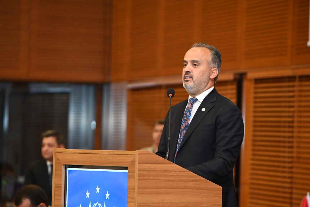 Büyükşehir Belediye Başkanı Alinur Aktaş, Bursa’nın 8500 yıllık tarihi ile medeniyetlerin kesişme noktası ve kültürlerin kaynaşma diyarı olduğunu hatırlattı. Bursa’nın tarihi, kaplıcaları, denizi, sanayisi, tarımı, doğası ve turizmi ile öne çıkan bir şehir olduğunu hatırlatan Başkan Aktaş, “Şüphesiz sağlık turizmi, inanç turizmi, spor turizmi konularında büyük bir potansiyel barındırıyoruz. Tarihî Çarşı ve Hanlar Bölgesi, Sultan Külliyeleri ve Cumalıkızık ile UNESCO Dünya Miras Listesi’ndeyiz. İnşallah İznik ilçemizde yakında UNESCO’ya akredite olacak. Çini ve ipeğimizle zanaat ve halk sanatları alanında Unesco’nun Yaratıcı Şehirler Ağı’na dâhil olduk. Uluslararası Türk Kültürü Teşkilatı tarafından 2022 Türk Dünyası Kültür Başkenti ilan edilen Bursa’mız, gelenekle geleceği aynı potada eriten, değişimini gelişerek sürdüren bir kenttir. Bunu bütün kalbimle söylüyorum ki Bursa’mız turizmin her alanı için cazibe merkezidir” dedi.