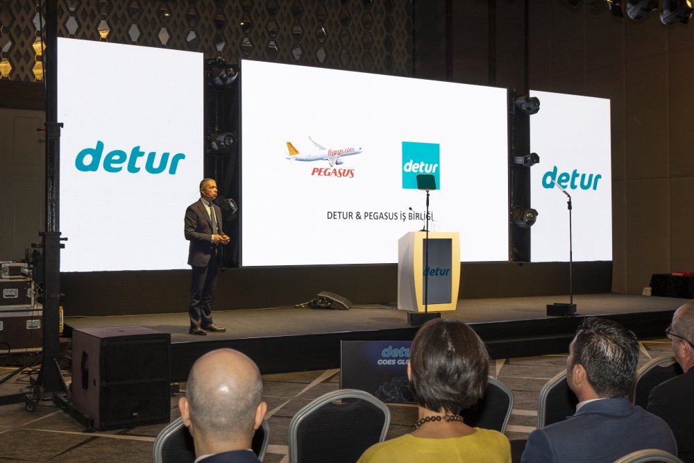 Belek’te düzenlenen toplantıda konuşan Pegasus Hava Yolları Genel Müdür Yardımcısı (CCO) Onur Dedeköylü de pandemiyle birlikte değişen havacılık sektöründeki uygulamaları, Pegasus’un projelerini ve havayolu ile tur operatörü arasındaki ilişkinin değişen boyutlarından bahsetti. Detur ile İskandinavya’nın 14 noktasından Antalya bölgesine uçuş yaptıklarını söyleyen Onur Dedeköylü, “Detur Goes Global buluşmasında havayolu, otel ve tur operatörü, yani sektörün üç büyük oyuncu bir arada bulunuyoruz. Bu açıdan bu toplantıyı önemli bir buluşma olarak görüyorum” dedi. Toplantı, Detur Global’in misafir memnuniyeti anketinde yüksek puan alan otellere plaket verdiği törenle son buldu.