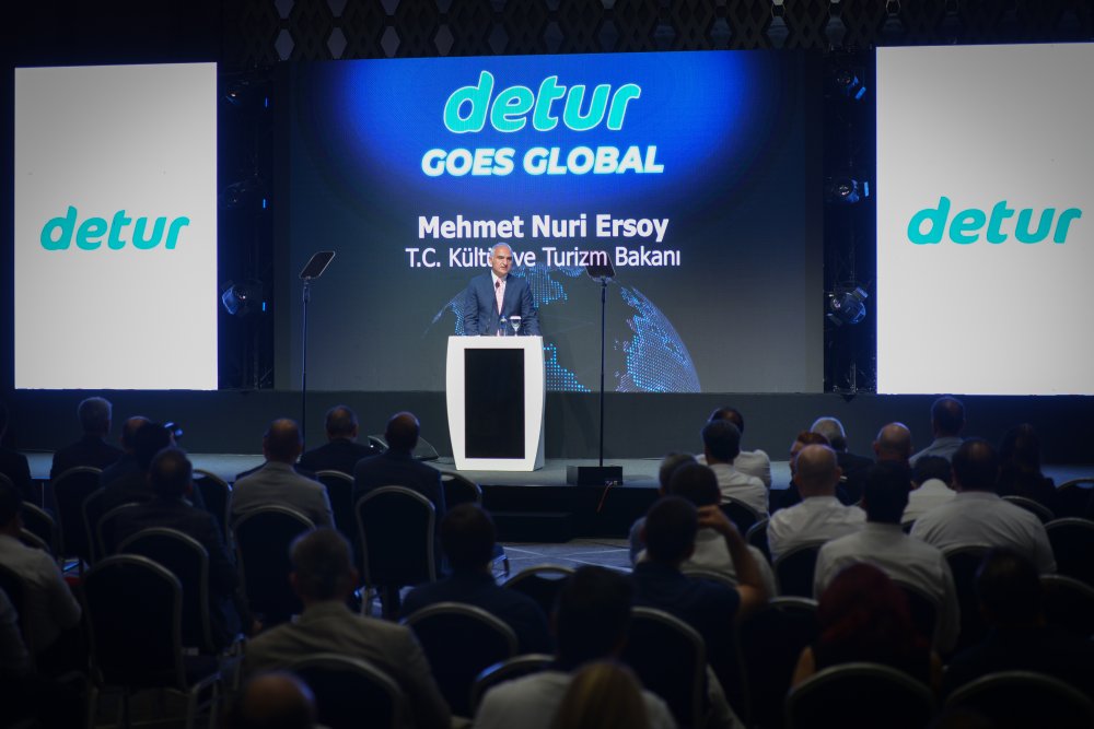 Turizm endüstrisinde havayolu, tur operatörü ve otelcileri bir araya getiren “Detur Goes Global” buluşmasında konuşan Kültür ve Turizm Bakanı Mehmet Nuri Ersoy, küresel ve bölgesel krizlere karşı bağışıklığı artırmak, nitelikli turisti getirebilmek ve kişi başı gelir hedeflerini yükseltmek için pazar çeşitliliğine konsantre olduklarını söyledi. Konuşmasında TGA’nın yürüttüğü tanıtım çalışmalarından bahseden Bakan Ersoy, aralarında Detur Global’in de olduğu, 43 ülkeden 170’e yakın tur operatörüyle ikili anlaşma yaparak birlikte reklam çalışmaları gerçekleştirdiklerini, bu sayıyı yıl sonuna kadar daha da artıracaklarını söyledi.