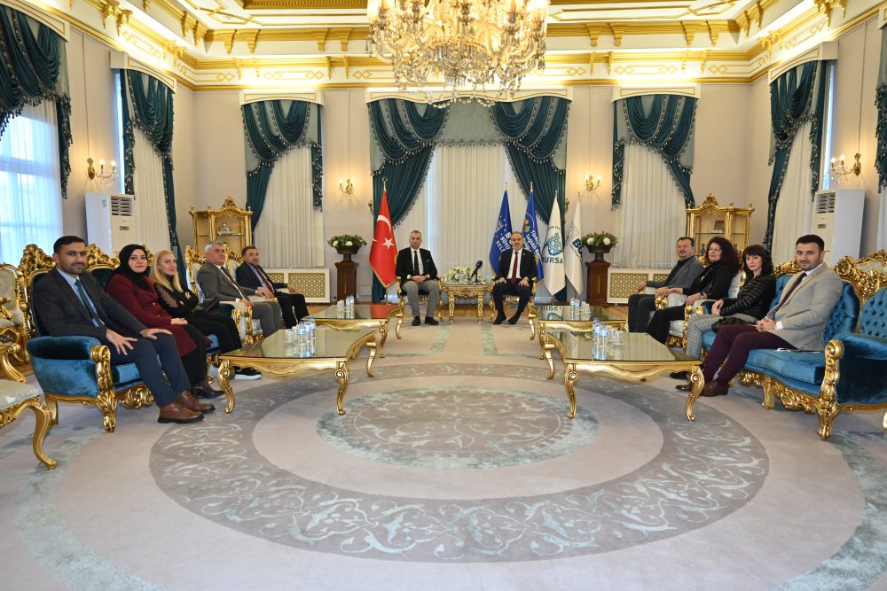 Güney Marmara Turistik Otelciler ve İşletmeciler Birliği Derneği Başkanı Buğra Artıç, yönetim kurulu üyeleriyle birlikte Bursa Büyükşehir Belediye Başkanı Alinur Aktaş’ı ziyaret etti. Turizm sektörüne yönelik açılan istihdam garantili kursların ele alındığı görüşmede konuşan Başkan Alinur Aktaş, “Bursa, sanayi ve tarım şehri olduğu kadar aynı zamanda bir turizm şehridir. Turizmde de kalifiye elemanın yetişmesi önemli ve kıymetli. Yeni açılan destinasyonlarda bu personellerin istihdam edilmesi önemli. Biz BUSMEK ve istihdama odaklanan BİKO aracılığıyla gençlerimizin yeni iş sahalarına yönelmelerini arzu ediyoruz. İstihdam odaklı eğitimlerimize ihtiyaç duyulan alanlarda kalifiye eleman yetiştirmek için kurslar düzenliyor ve iş arayanlarla işverenleri de buluşturmaya çalışıyoruz. BUSMEK, BİKO ve GÜMTOB işbirliğinde açtığımız kurslarla da turizm sektörüne kalifiye eleman yetiştirmiş olacağız. Turizmle alakalı katıldığımız fuarlarla, yaptığımız ikili görüşme ve tanıtım faaliyetleriyle bu standardın Bursa’da yükselmesini arzu ediyoruz. Uludağ, deniz, tarihi mekanlar gibi önemli avantajlarımız var. Tabi bunu da ilgili personelle desteklemek işin önemli kısmı. İlgili arkadaşların bizimle irtibata geçmelerini belirtiyor, GÜMTOB’a da böyle bir projede paydaşlığı için çok teşekkür ediyorum. Bursa’mız ve gençlerimiz için hayırlı olsun” diye konuştu.