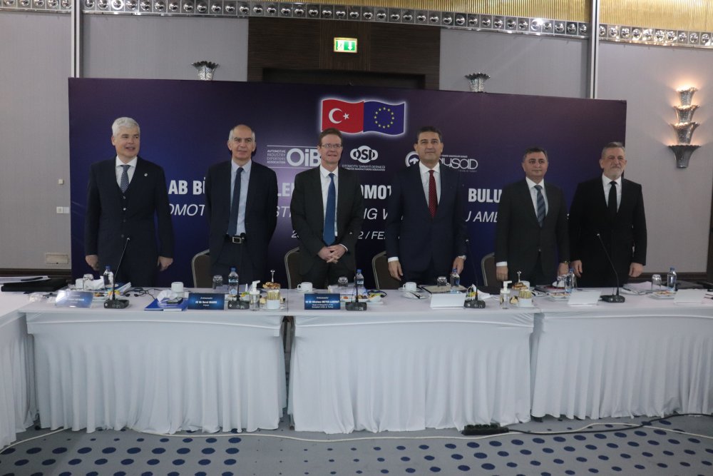 Otomotiv Sanayii Derneği (OSD), Taşıt Araçları Tedarik Sanayicileri Derneği (TAYSAD) ve Uludağ Otomotiv Endüstrisi İhracatçıları Birliği (OİB) temsilcileri, Avrupa Birliği (AB) üyesi ülkelerin Türkiye’de görevli büyükelçileri ile Bursa’da düzenlenen toplantıda buluştu. Türk otomotiv sanayinin, AB ile ticaretinin geleceği adına önemli konu başlıklarının ele alındığı toplantıda; Türkiye-AB ilişkilerinin ortak çıkarlar ışığında daha da derinleştirilmesinin önemi bir kez daha gözler önüne serildi. AB Türkiye Delegasyonu Başkanı Büyükelçi Nikolaus Meyer-Landrut ve Otomotiv Sanayii Derneği Yönetim Kurulu Başkanı Haydar Yenigün’ün açılış konuşmaları ile başlayan toplantıda; Gümrük Birliği, otomotiv sanayinde yeşil dönüşüm konularına değinildi. Dijital dönüşüm alanında yaşanan süreçlerin de masaya yatırıldığı toplantıda; AB ile Türkiye arasındaki mevcut kuvvetli ticari iş birliğinin daha da geliştirilmesi üzerine değerlendirmelerde bulunuldu.