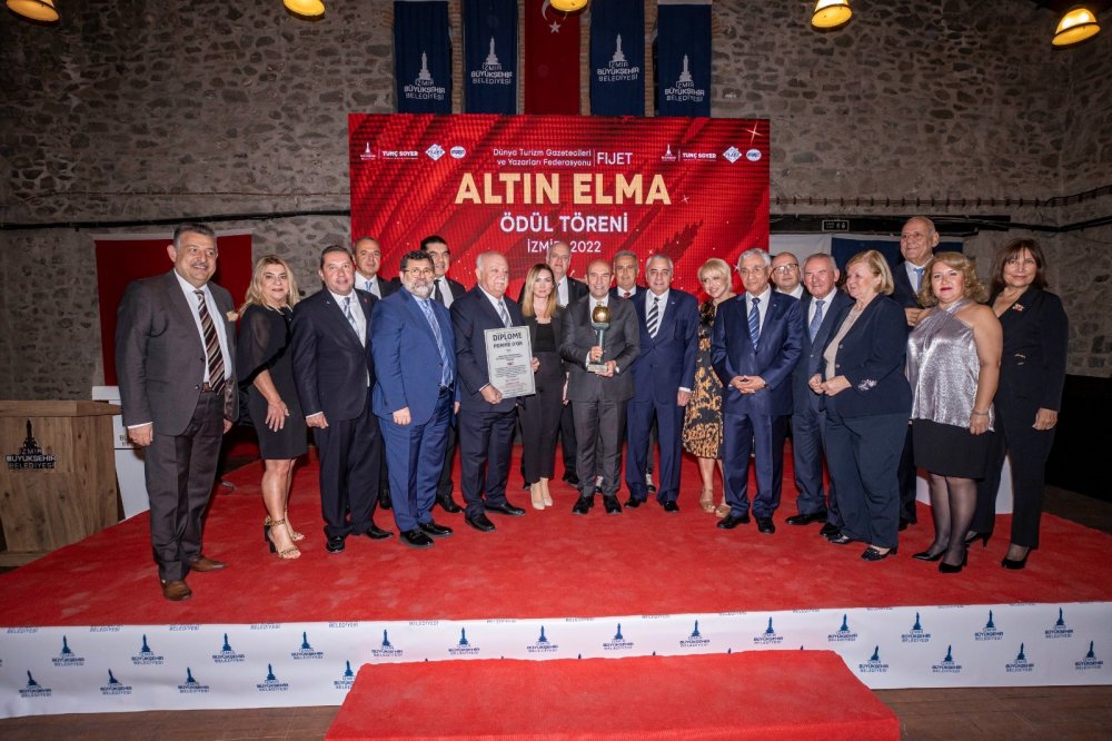 Uluslararası Turizm Gazetecileri ve Yazarları Federasyonu (FİJET), “Dünya Turizm Oscar”ı olarak anılan “Altın Elma Ödülü”nü bu yıl kentin tarihi ve kültürel değerlerini koruyarak turizm faaliyetlerini destekleyen İzmir Büyükşehir Belediyesi’ne verdi. İzmir Büyükşehir Belediye Başkanı Tunç Soyer, ödülü Dünya Turizm Gazetecileri ve Yazarları Federasyonu Başkanı Tijani Haddad'ın elinden aldı.