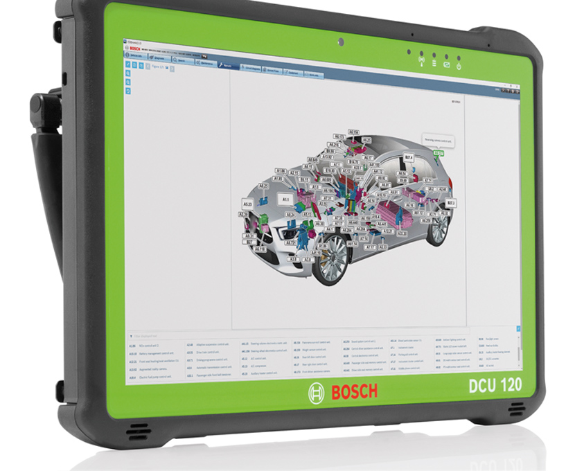 Bosch, denenmiş ve test edilmiş DCU 100'ün halefini geliştirdi. Yeni DCU 120 diyagnoz kontrol ünitesi, gelişmiş özellikler ve gelişmiş teknoloji sunuyor. 11,6 inçlik geniş/kapasitif dokunmatik ekran, yeni tablet bilgisayarın kullanımını son derece kolay hale getiriyor. Dokunmatik ekranı çalıştırmak için gereken tek şey hafif parmak basıncıdır. Ayrıca, geniş full HD görüntünün sağladığı yüksek kaliteli ekran, Bosch servis yazılımının içeriğini okumayı kolaylaştırıyor. Güçlü mikroişlemci, Esitronic gibi tüm Bosch yazılım paketlerinin yanı sıra sürücü destek sistemleri, ağa bağlı onarım, araç sistemleri analizi ve emisyon analizini test etme ve diyagnoz yazılımlarının güvenilir bir şekilde çalışmasını sağlıyor. DCU 120, servislerin otomobil üreticilerinin diyagnoz verilerini almasına izin veren PassThru fonksiyonlarını da işleyebiliyor. Bu özellik yeni tablet bilgisayarı, geleceğin servis uygulamaları ve sistemleri için hazır hale getiriyor. Yaklaşık beş saat ile DCU 120'nin pil ömrü, önceki modelin iki katıdır. IP65 koruma sınıfına sahip sağlam bir tasarımla birlikte bu, Bosch cihazını özellikle mobil servis kullanımı için ideal hale getiriyor.
