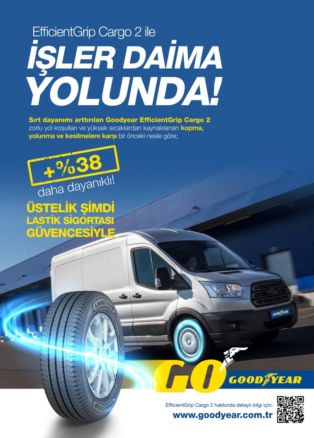 Anlaşmalı Goodyear bayilerinden aynı anda 4 adet Goodyear EfficientGrip Cargo 2 deseni lastik satın alan Goodyear kullanıcıları, fatura tarihinden itibaren 30 gün içinde http://www.goodyearyanimda.com adresinden aktivasyon işlemini tamamlayarak üyeliğinin aktif olmasıyla, fatura tarihi itibarı ile 1 yıl süresince Goodyear Lastik Sigortası Hizmeti’nden faydalanma hakkı kazanıyor.