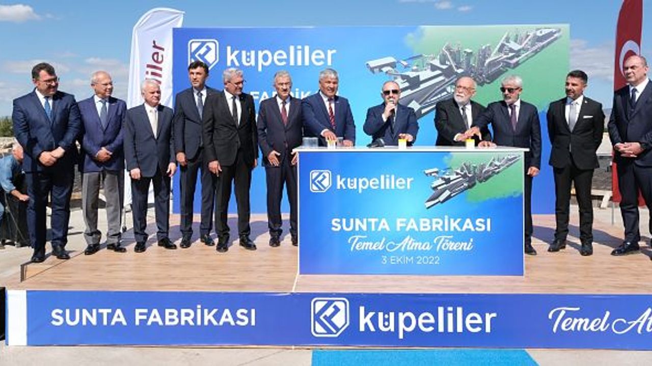 Temel atma töreninin açılışında konuşan Küpeliler Endüstri A.Ş. Yönetim Kurulu Başkan Yardımcısı Nadir Küpeli, “Küpeliler A.Ş bugün çimento fabrikası, sunta fabrikası, OSB levha fabrikası, ambalaj fabrikası, hazır beton, madencilik, inşaat gibi toplam 7 adet iş kolunda faaliyet göstermektedir. İç Anadolu Bölgesinde tek olan halen orta teknoloji ile günde 277 metreküp üretim kapasitesi olan mevcut sunta fabrikamızı günün şartlarına uygun yüksek teknoloji ve dünya ile rekabet edebilecek endüstri 4.0’a tam uyumlu hale getirmek için 1 milyar 440 milyon TL’lik bir yatırımla 5 kat birden büyütüyoruz. 152 bin 500 metrekare arsa üzerinde kurulu mevcut tesisimizde 93 olan istihdam yeni fabrikamızla birlikte 200 kişin üzerine çıkacak ve çalışan sayımızın yüzde 40’ı beyaz yakalı olacak. Temelini atacağımız fabrika Yeni kurulacak hat endüstri 4.0 standartlarını tam olarak karşılayan “Siemplekamp” 9. Jenerasyon Yonga Levha hattına sahip olacak ve sıfır atık ile üretim yapacaktır. 2023 yılı bitmeden tüm üniteleriyle devreye alınmasını planlıyoruz. Sunta fabrikamız Küpeliler Endüstri A.Ş. cirosuna yıllık 2,5 milyar TL’den fazla katkı sağlayacaktır. Üretilen katma değerli ürünler hem iç piyasanın ihtiyacını karşılayacak hem de ihracat yapılarak ülkemize döviz kazandıracaktır” dedi.