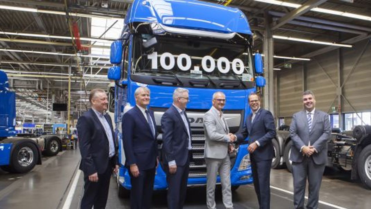 DAF Trucks, ilk defa bu kadar hızlı 100,000’lik seri üretti. 100,000’inci araç, DAF XF 450 4x2 FT Super Space Cab, Belçika’daki Gheys Nakliyat’a kutlamayla teslim edildi.