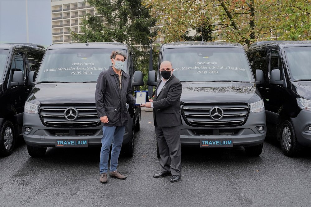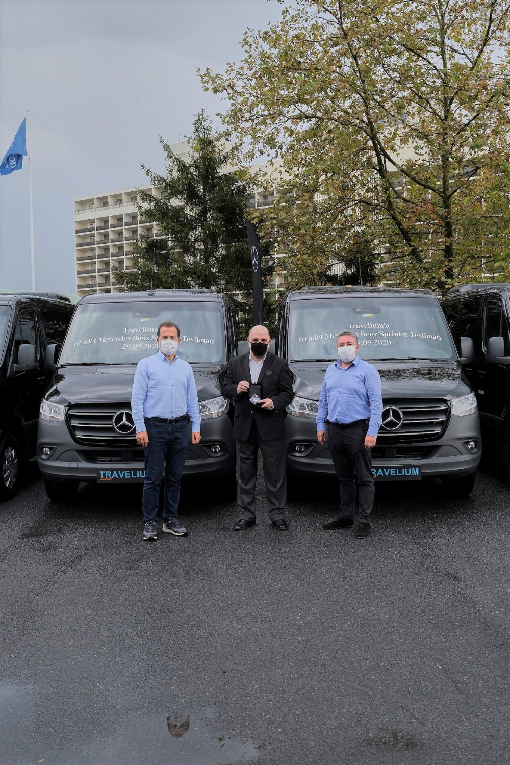 29 Eylül günü Hilton İstanbul Bosphorus’ta gerçekleştirilen törende araçlar, Mercedes Benz Otomotiv Hafif Ticari Araçlar Ürün Grubu İcra Kurulu Üyesi Tufan Akdeniz, Hafif Ticari Araçlar Satış Müdürü Serdar Yaprak, Hafif Ticari Araçlar Certified Satış Müdürü Faruk Özer, Koluman İstanbul Ticari Araçlar Satış ve Pazarlama Direktörü Ali Saltık ile Hafif Ticari Araçlar Satış Müdürü Ezgi Güçtekin tarafından Travelium Turizm Yönetim Kurulu Başkanı Babur Arslan’a teslim edildi.
