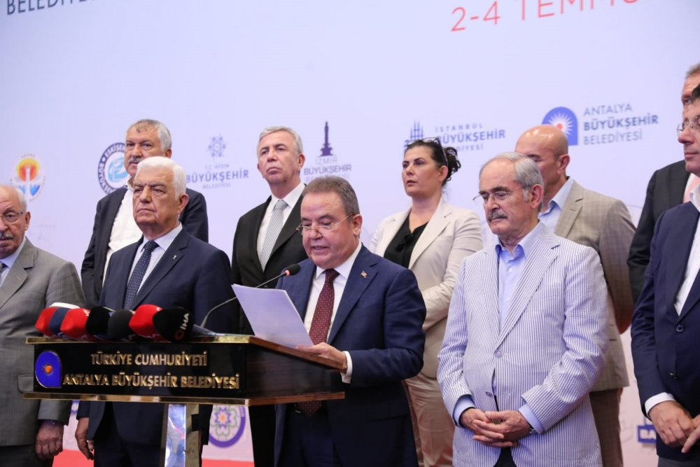 Öte yandan Kültür ve Turizm Bakanlığı tarafından meclise gönderilen Turizm Teşvik Kanunu Taslağı, meclis ihtisas komisyonundan geçmiştir. Taslağa göre belediye sınırları içinde bulunan yeme-içme, eğlence, günübirlik mesire alanları ile konaklama tesisleri ve plajlar dahil turizmle ilgili alanlar, Kültür ve Turizm Bakanlığı’nın tasarruf ve denetimine bırakılacaktır. Bu yaklaşımın belediyelerin gelirlerine el koyma anlamını taşıdığı ve işlemeyeceği ortadadır.Türkiye’nin içinde bulunduğu ekonomik, siyasal krizlere rağmen 11 Büyükşehir Belediye başkanı olarak canla başla çalışmaya devam edeceğiz. Tüm engellemelere karşın umudu çoğaltarak vatandaşlarımızın derdine derman olacağız.Bu buluşmamız vesilesiyle tüm vatandaşlarımızın yaklaşmakta olan mübarek kurban bayramını kutluyoruz.
