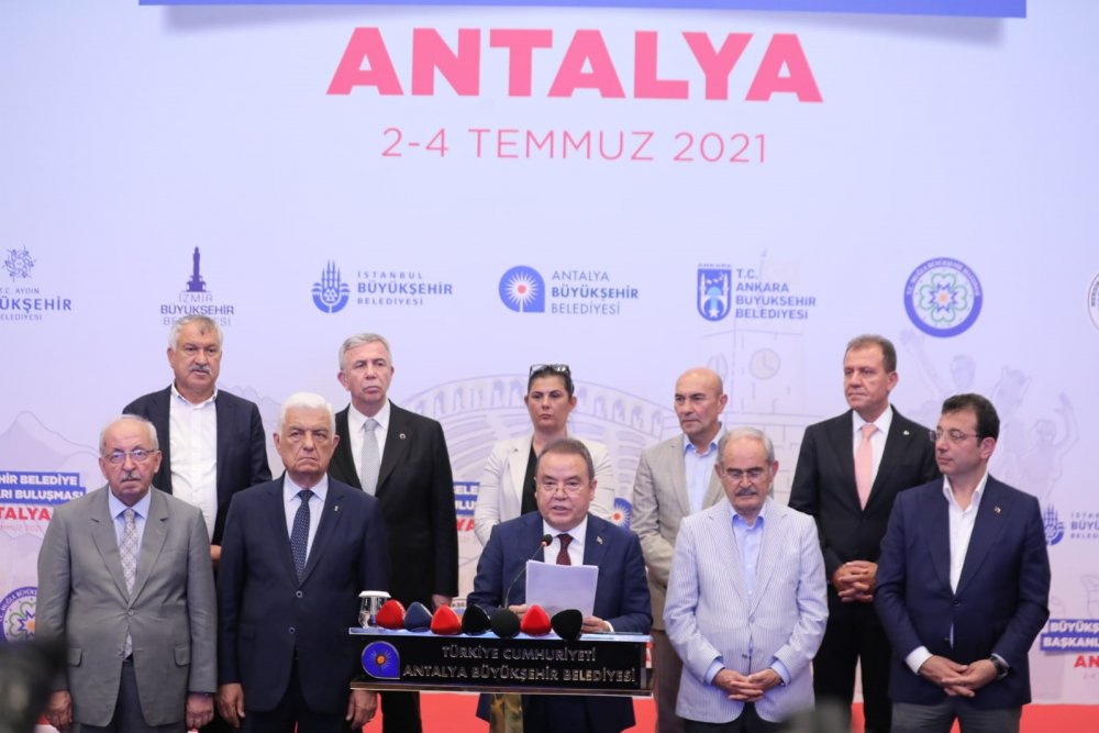 Toplantıda Cumhurbaşkanlığı tarafından yayınlanan Tasarruf Genelgesine de değinildi. Genelgenin, Cumhurbaşkanlığı ve TBMM de dahil tüm kamu kurumlarını kapsaması gerektiği vurgulandı. En kısa sürede 30 büyükşehir belediye başkanı ile Cumhurbaşkanının yeniden bir araya gelmesi çağrısı yapıldı. Yurttaşların yaklaşmakta olan kurban bayramları kutlandı.İstanbul Büyükşehir Belediye Başkanı Ekrem İmamoğlu, Ankara Büyükşehir Belediye Başkanı Mansur Yavaş, İzmir Büyükşehir Belediye Başkanı Tunç Soyer, Adana Büyükşehir Belediye Başkanı Zeydan Karalar, Eskişehir Büyükşehir Belediye Başkanı Yılmaz Büyükerşen, Aydın Büyükşehir Belediye Başkanı Özlem Çerçioğlu, Antalya Büyükşehir Belediye Başkanı Muhittin Böcek, Muğla Büyükşehir Belediye Başkanı Osman Gürün, Mersin Büyükşehir Belediye Başkanı Vahap Seçer, Tekirdağ Büyükşehir Belediye Başkanı Kadir Albayrak ve Hatay Büyükşehir Belediye Başkanı Lütfi Savaş’ın katılımlarıyla gerçekleşen toplantının ardından bir açıklama yayınlandı. Bu açıklama açıklama şöyle:“Türkiye nüfusunun yarısından fazlasına hizmet veren Büyükşehir Belediye Başkanları olarak, buluşmalarımızın pandemi sebebiyle yaptığımız online toplantılar dahil, 11.sini Antalya Büyükşehir Belediyemizin ev sahipliğinde, turizm cenneti Antalya’da gerçekleştirdik.Toplantımızda her zaman olduğu gibi Türkiye’mizin öne çıkan başlıklarını bütüncül bir boyutta ele alarak ortak değerlendirmelerde bulunduk.