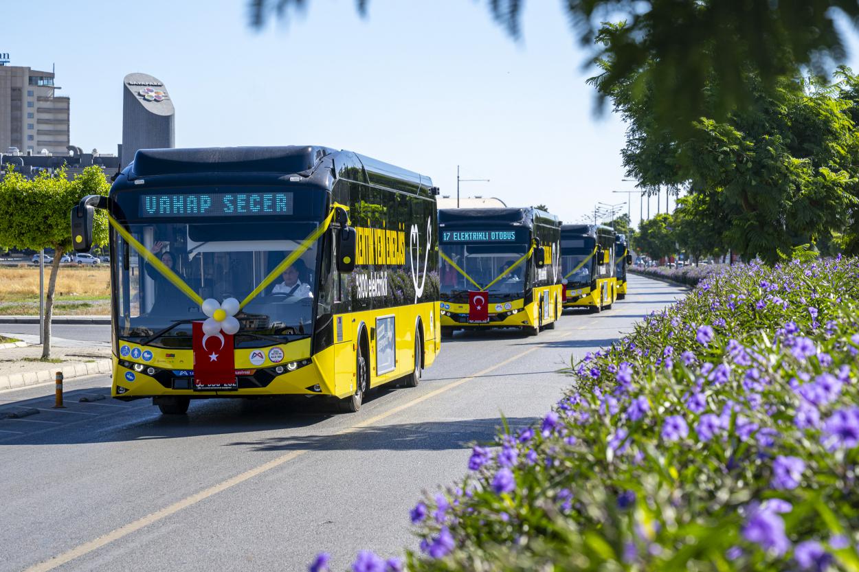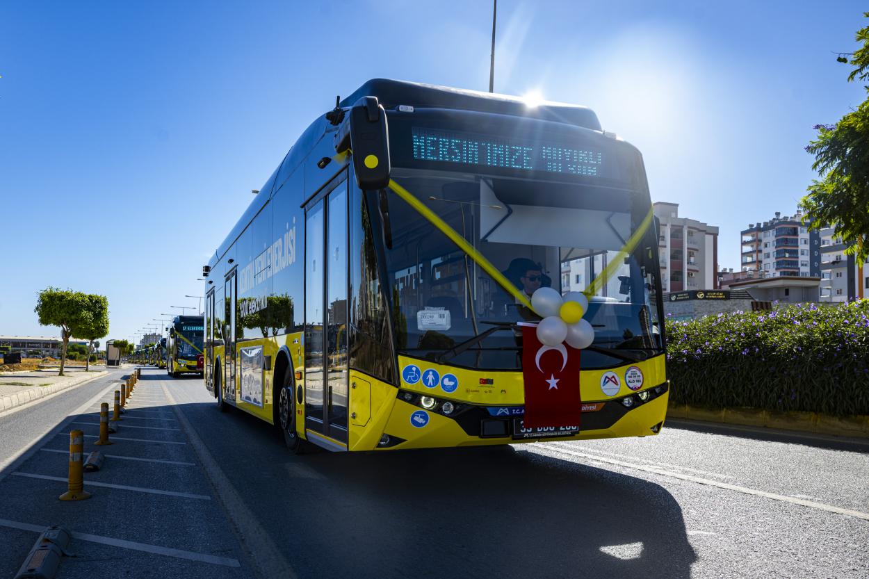 Mersin’de yeni bir dönemi ve vizyonu başlatan Büyükşehir ile kent ulaşımında elektrikli otobüs dönemine adım atılmış oldu. Hizmete alınan 18 elektrikli otobüs, Mersin Büyükşehir Belediyesi Ulaşım Dairesi Başkanlığı bünyesinde Mersinlilere hizmet verecek.