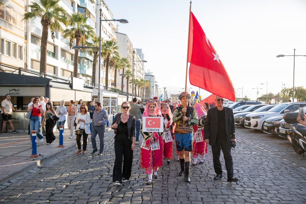 Geçen yıllarda katılımcıların yaptığı gösterileri izleyenlerin ne kadar duygulandığını, heyecanlandığını, o coşkuya kapıldığını gözlemlediğini anlatan Başkan Tugay, şunları söyledi: “Bu yıl da 18’incisini düzenlediğimiz festival kapsamında birçok ilçede gösteriler olacak. Gazi Mustafa Kemal Atatürk’ün ‘Yurtta Barış Dünyada Barış’ ilkesi doğrultusunda ve o duyguyla düzenlediğimiz bu ve benzeri etkinlikler, aynı zamanda ülkelerimiz arasında var olan bağları güçlendirecek. Gençlerimiz aracılığıyla da yeni dostlukların kurulmasını sağlayacak. İzmir hoşgörü şehridir. Demokrasi geleneğine bağlıdır. Özgürlerine düşkün insanların şehridir. Bu kültürel değerleri ile başka ülkelere örnek olur.” Konuşmaların ardından, katılımcılar Cumhuriyet Meydanı’ndan Gündoğdu Meydanı’na kadar kortej eşliğinde yürüdü. Program Gündoğdu Meydanı'nda halk oyunları gösterileri ve konserle renklendi.