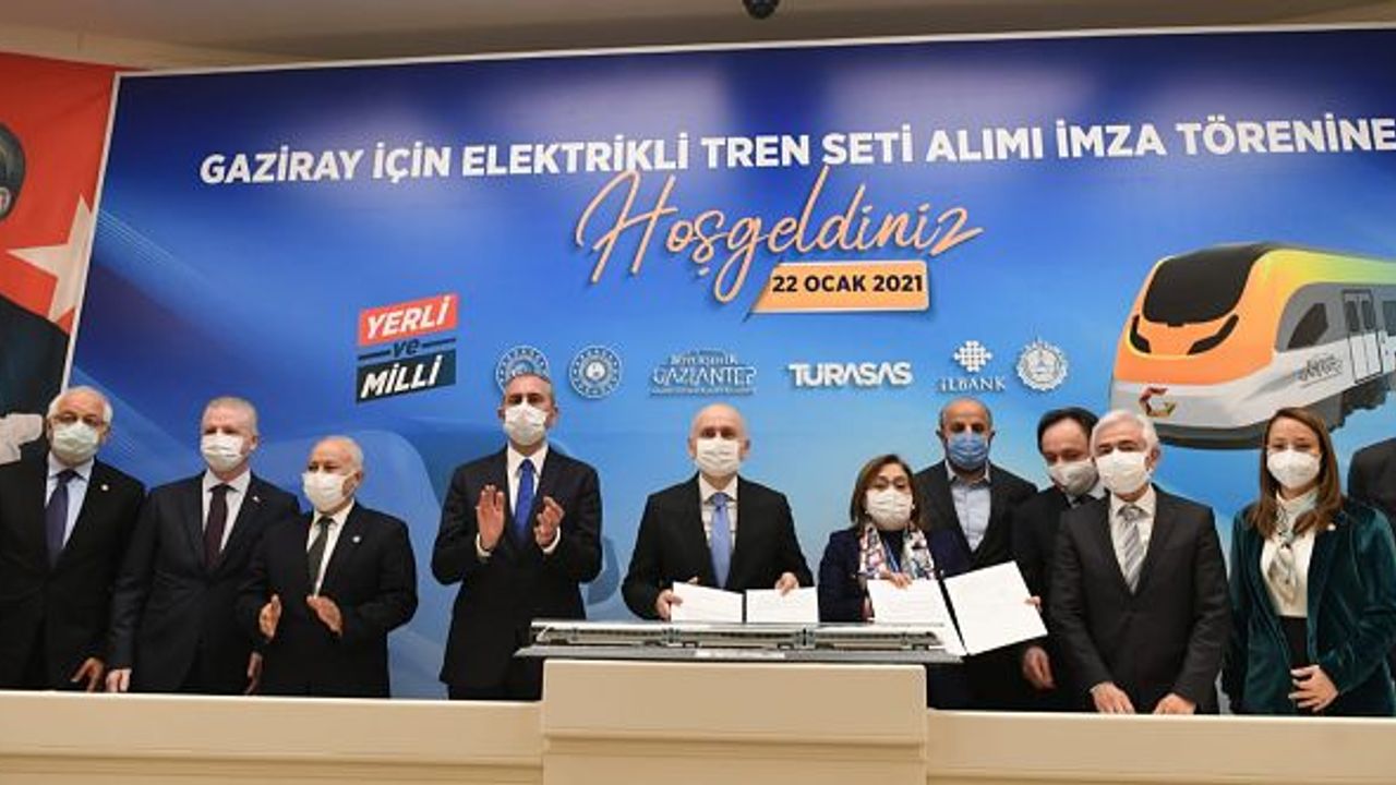 Gaziantep Büyükşehir Belediyesinin Gaziray’da kullanılacak 32 araçtan oluşan, 8 adet Elektrikli Tren Seti Tasarımı, Temini ve Montajı için açmış olduğu uluslararası ihaleyi yabancı rakiplerine karşı en avantajlı teklifi veren ülkemizin raylı sistemler sektörünün en büyük temsilcisi TÜRASAŞ’ın kazandığını anımsatan Bakan Karaismailoğlu, konuşmasını şu şekilde sürdürdü: “TÜRASAŞ büyük Türkiye’ye yaraşan, kendi teknolojik birikimimizle, kendi deneyimimizle, yerli ve milli ürünlerimizi ortaya koymaktır. Öyle ki, TÜRASAŞ sayesinde, yakın gelecekte lokomotiften, vagona, Elektrikli Tren Setinden, Banliyö Tren Setlerine kadar neredeyse bütün raylı sistem araçları Türkiye’de üretiliyor ve ihraç ediliyor olacaktır.”“TÜRASAŞ’ta Gaziray için de üretimi yapılacak araçların toplam maliyeti yaklaşık 47 milyon Euro’dur. İşletme hızı saatte 120 kilometre ve araç gövdeleri alüminyum olacak şekilde 4 araçtan oluşan bir tren seti toplam 1000 yolcu taşıma kapasitesine sahip olacaktır. İlk 2 Set 24 ay, tüm setler ise 28. ayın sonunda Gaziantep Büyükşehir Belediyesine teslim edilecek.”