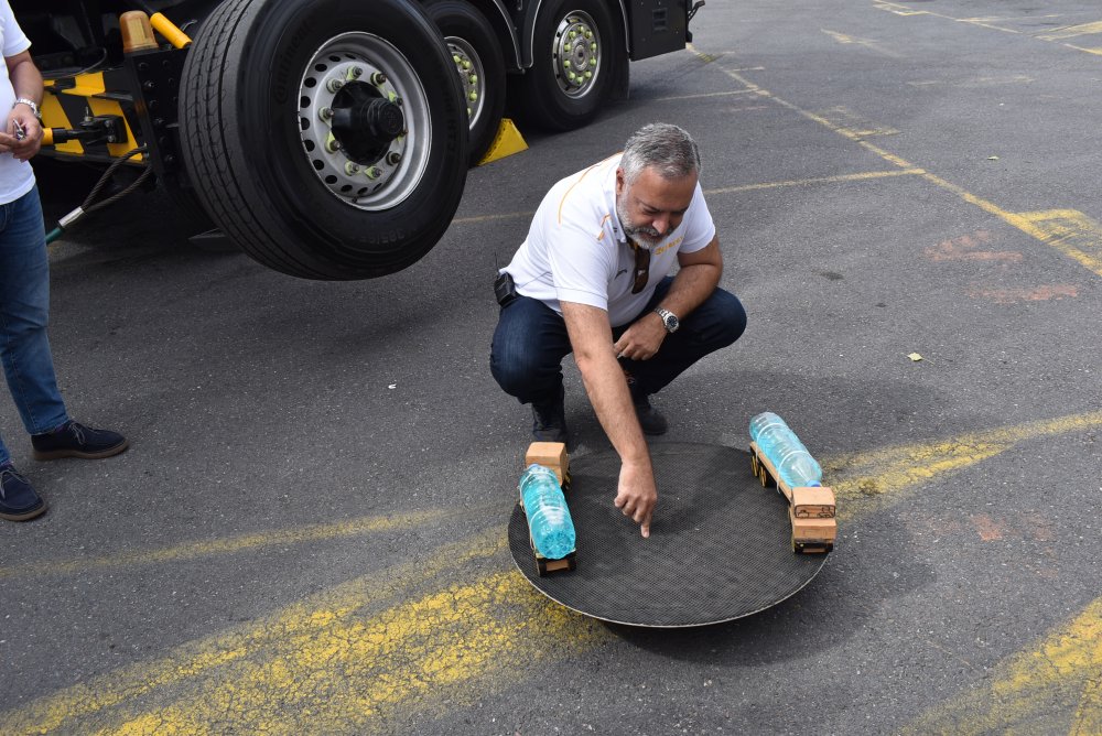 Yapılan similasyonda bilinenin aksine tam dolu aracın devrildiği görüldü. Mert İntepe, “Yarım dolu araç sürüş konforunu bozar ve araç içindeki hareketlilik ile sürücü gazdan ayağını çeker. Tam dolu arabanın içinde hareketlilik olmadığı için sürücü gazdan ayağını çekmez ve merkez kaç kuvvetinden dolayı araç devrilir. Ülkemizde sürücüler lastik hava basıncı noktasında da yeterli bilgiye sahip değil” dedi. Ayrıca basın mensupları da ıslak ve engelli zeminde araçları deneme imkanına sahip oldular.