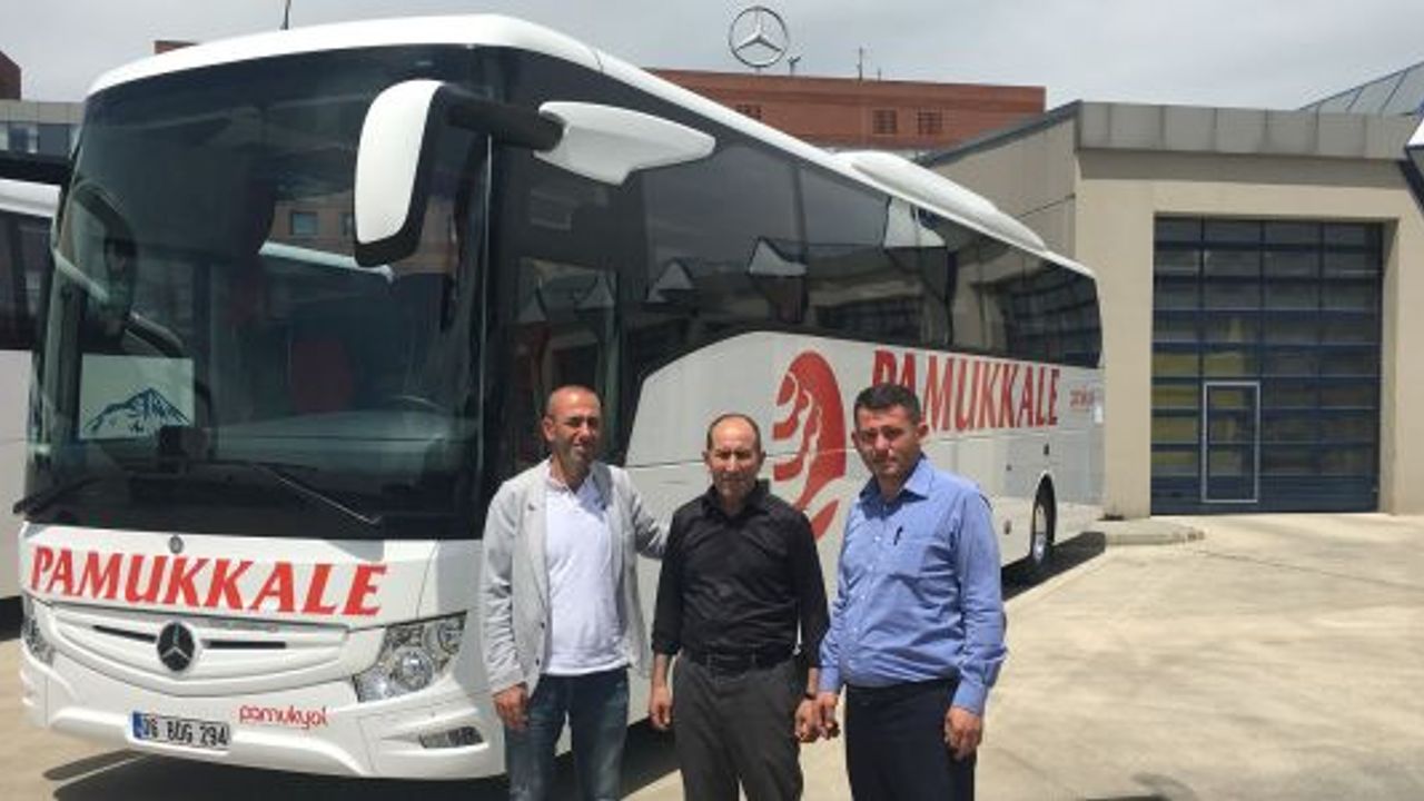 Koluman Ankara tarafından Pamukkale Turizm’e satışı gerçekleştirilen 1 adet Tourismo 16 RHD, Ahmet Bayrakçı, Kamil Zan ve Erdal Avseren’e teslim edildi. Teslimat töreninde Tourismo’ların ekonomi dostu yakıt performansına ve yüksek ikinci el değerine vurgu yapıldı. Pamukkale yetkilileri, Tourismo 16’ların piyasa koşullarına göre oldukça yüksek performans gösterdiklerini belirterek, Mercedes ile yaptıkları iş birliklerinden duydukları mutluluğu da dile getirildi.