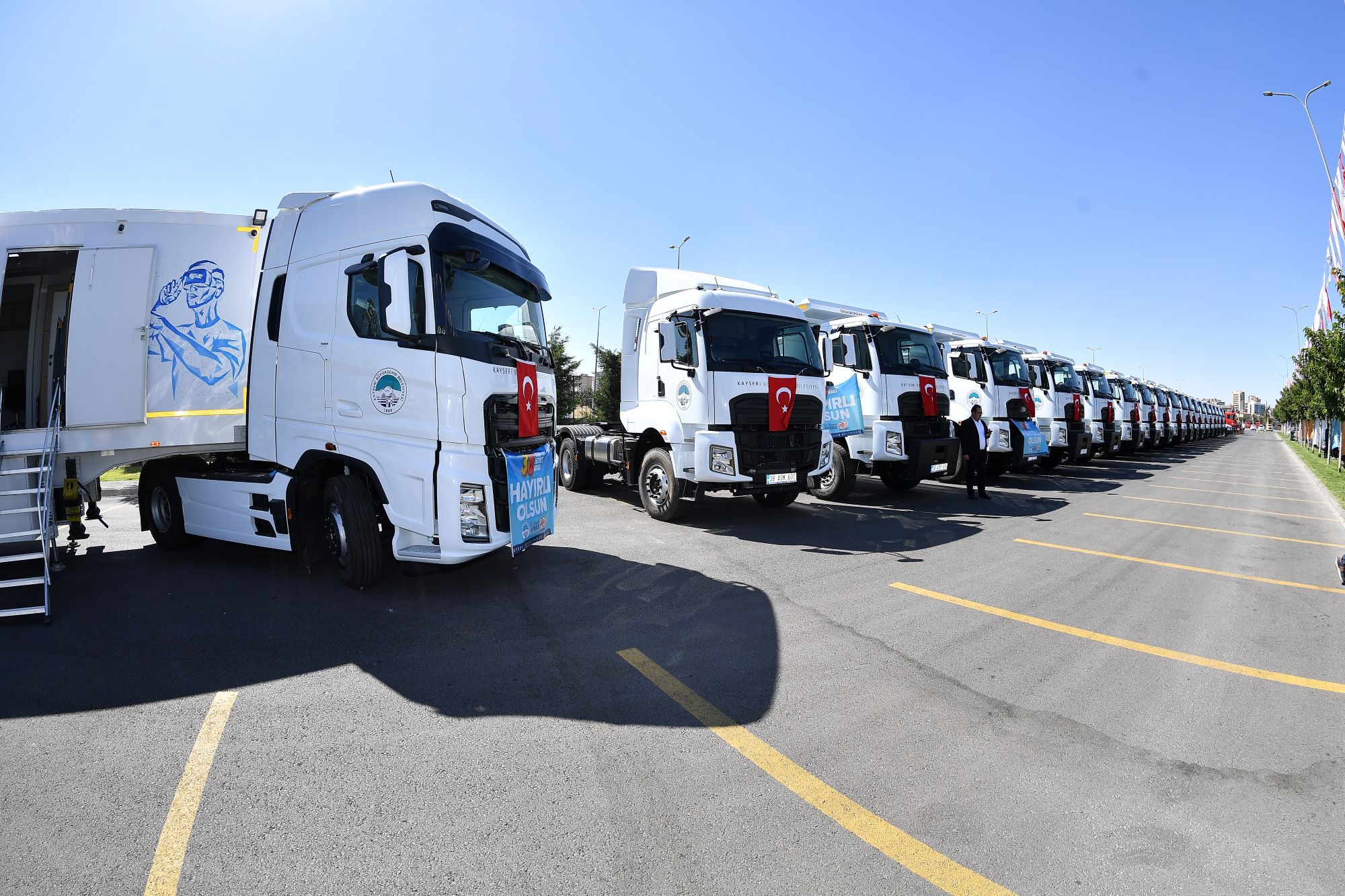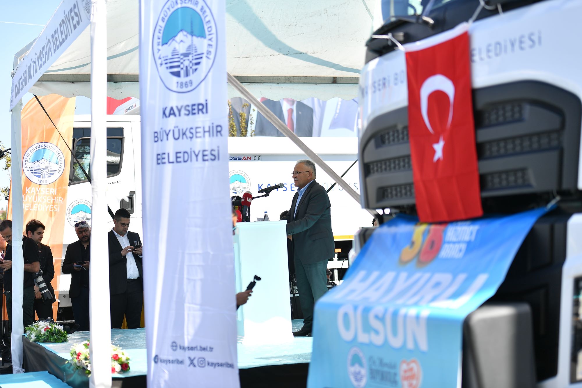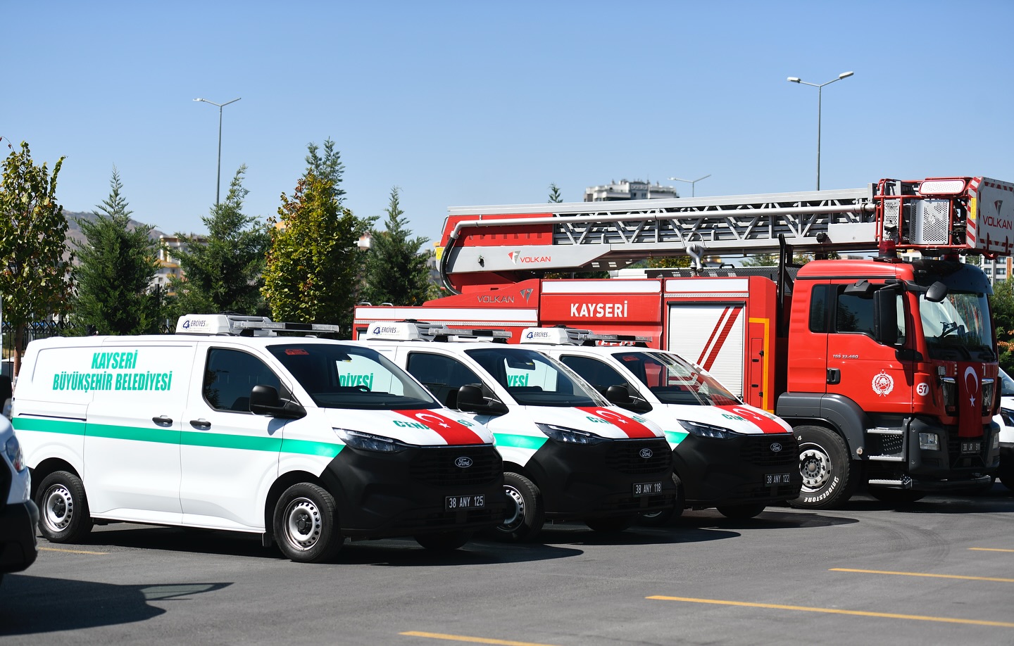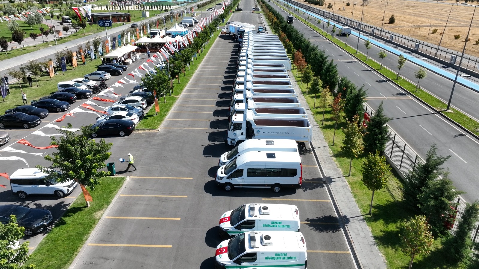 Yeni hizmet araçları, belediyenin farklı daire başkanlıkları ve iştiraklerine dağıtıldı. Çevre Koruma Daire Başkanlığı’na 3 adet cenaze aracı, Fen İşleri Daire Başkanlığı’na 1 yama silindiri, 1 ekskavatör, 1 yükleyici, İtfaiye Daire Başkanlığı’na 2 adet 28 metrelik modern itfaiye aracı, Makine İkmal Daire Başkanlığı’na 1 sepetli araç, Kırsal Hizmetler Daire Başkanlığı’na 5 tonluk 1 forklift, 1 adet 16+1 personel servisi, Park, Bahçeler ve Ağaçlandırma Daire Başkanlığı’na 1 ağır hizmet tipi çim biçme makinesi, İklim Değişikliği ve Sıfır Atık Daire Başkanlığı’na 2 standart çekici, Erciyes A.Ş.’ye 1 kar ezme makinesi ve Ulaşım A.Ş.’ye 10 adet 6x4 hafriyat kamyonu, 10 adet 8x4 hafriyat kamyonu, 1 çift çekici, 1 standart çekici, 1 adet 16+1 personel taşıma aracı kazandırıldı.