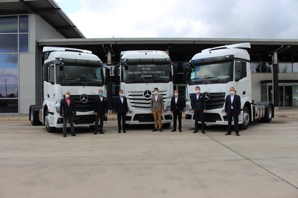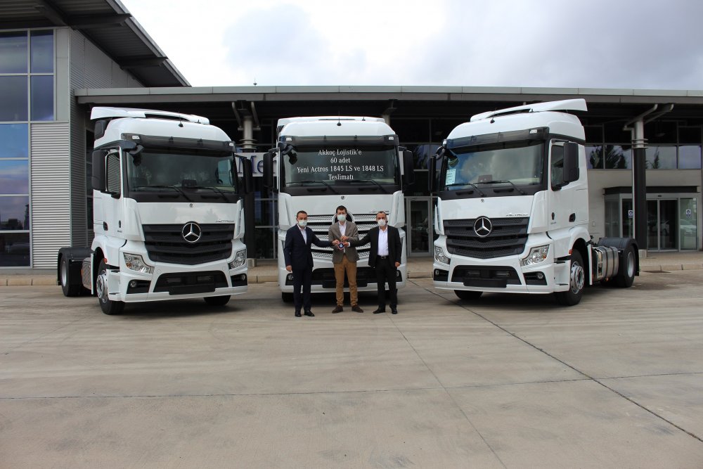 Mercedes-Benz Türk Aksaray Kamyon Fabrikası’nda gerçekleşen teslimat töreninde Actros 1845 LS ve Actros 1848 LS modelleri sergilenirken, araçlar Mercedes-Benz Türk Kamyon Filo Satış Grup Müdürü Yusuf Adıgüzel, Koluman Ankara Kamyon Satış Müdürü Arcan Erciş tarafından Akkoç Lojistik’in firma ortakları Orhan Akkoç ve Doğan Akkoç’a teslim edildi.